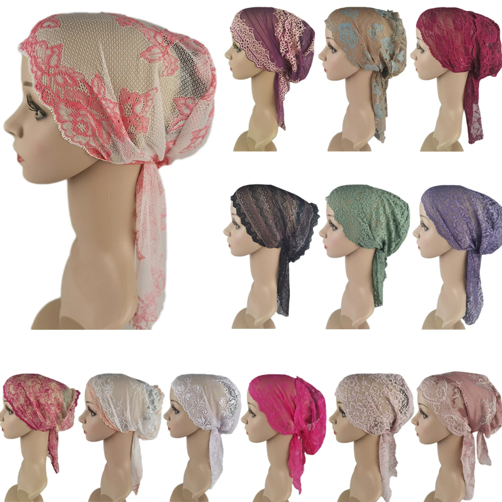 Мусульманский женский хиджаб с кружевом тюрбан шапочка внутренний шарф Мусульманский чехол для выпадения волос под шарф головной убор