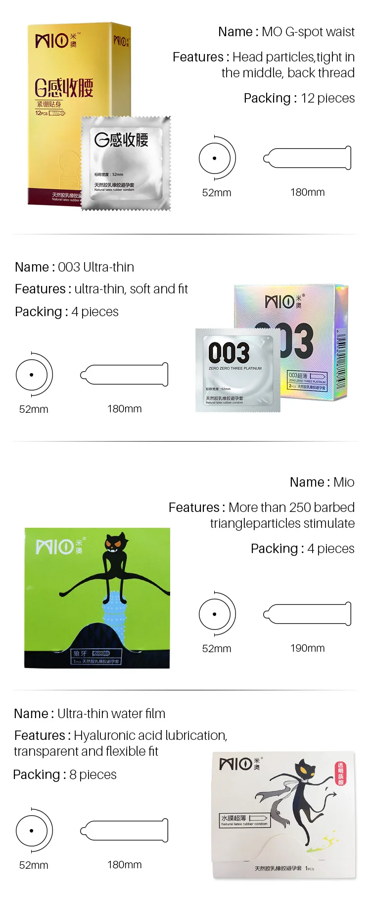 Презервативы MIO из натурального латекса с большими частицами, презервативы с дополнительной смазкой, презервативы с задержкой пениса, интимные игрушки 4 типа