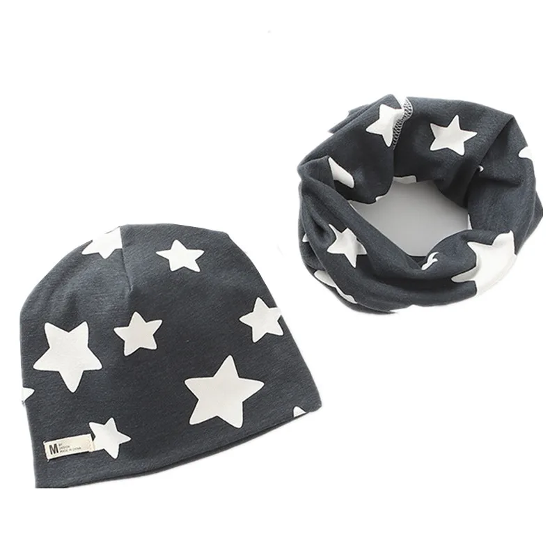 Новые модные хлопковые детские шапки, шарф, шапка для девочек, комплект с рисунком совы, звезды, Детская накидка на голову, зимний теплый воротник, детские вязаные шапки, комплекты