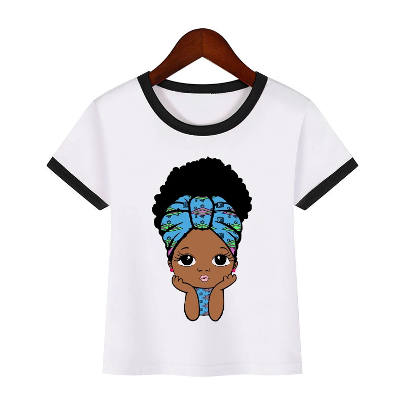 Милая афроамериканская футболка с пышными волосами меланина для девочек с короной, детская черная футболка с принтом принцессы, одежда для девочек, детская футболка для мальчиков, футболка
