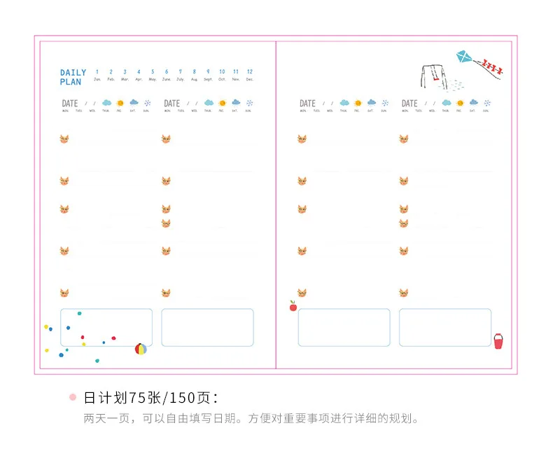 Милый канцелярский блокнот 365 планировщик Еженедельный ежемесячный...
