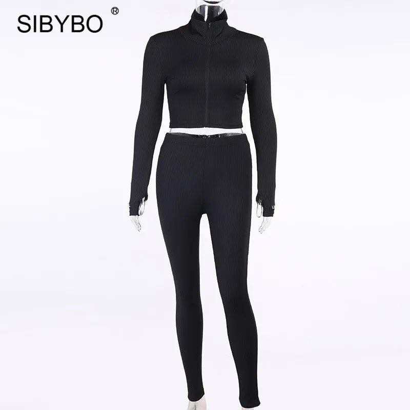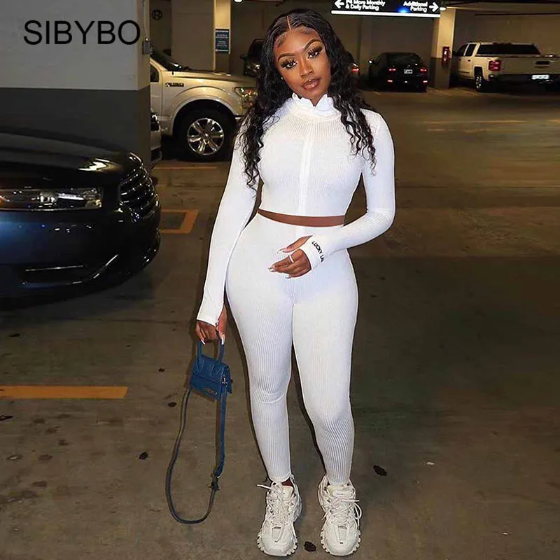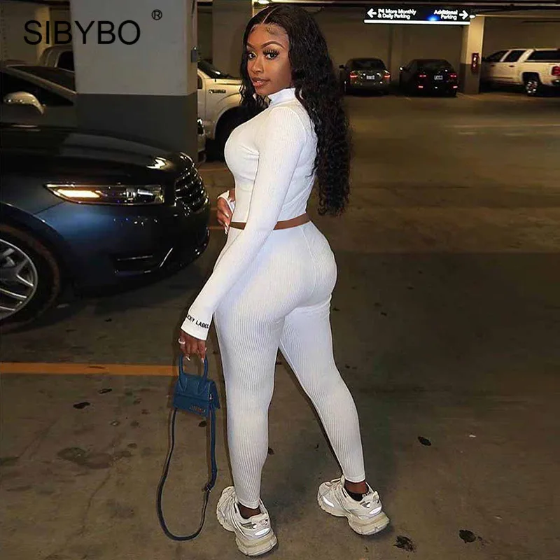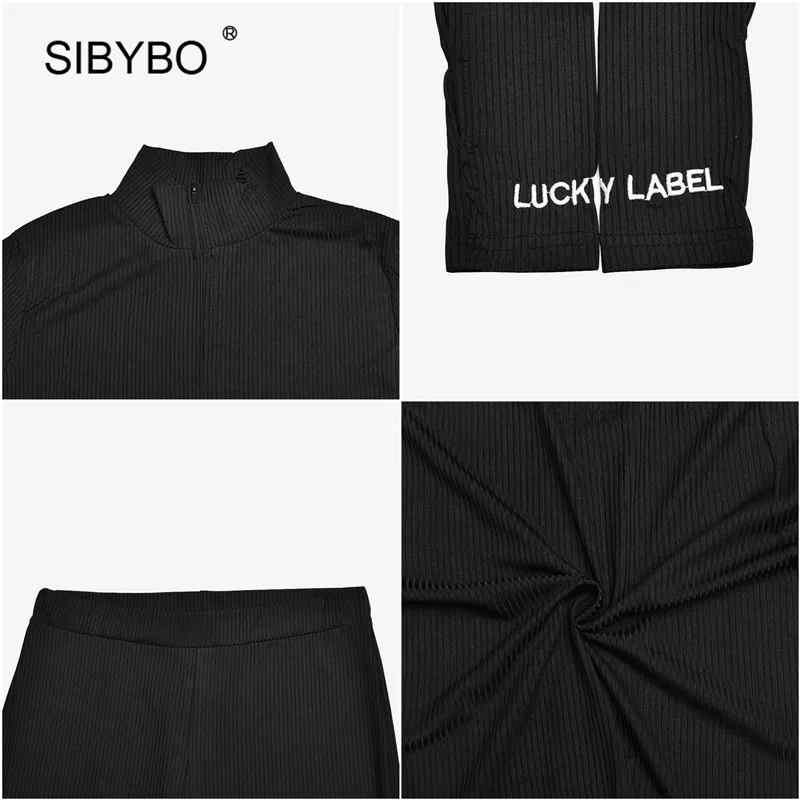 Женский комплект из двух предметов Sibybo, в рубчик, с надписями, Топ с длинным рукавом, штаны, спортивный костюм на осень