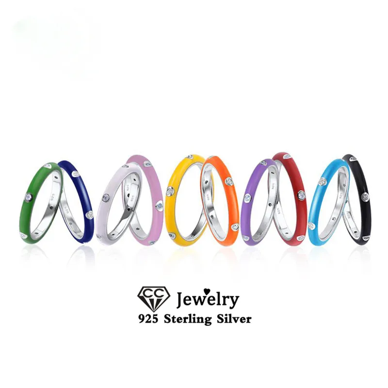CC Твердые серебряные кольца 925 пробы для женщин с фианитом красочные штабелируемые эмалевые кольца ручной работы изящные ювелирные изделия Прямая поставка CC3160