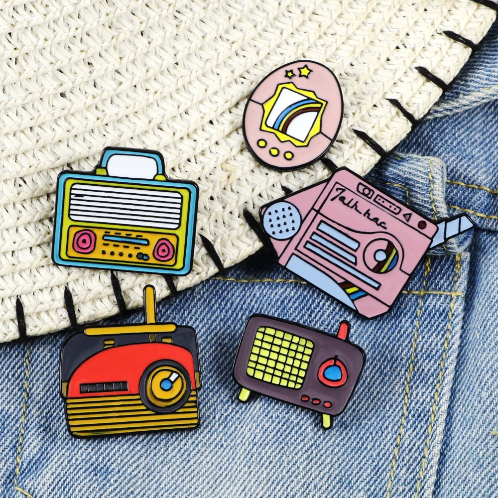 Винтажная эмалированная заколка для радио, ТВ-рекордера, мультяшный музыкальный проигрыватель, заколка для мужчин и женщин из джинсовой ткани, заколки для лацканов, классические ювелирные броши, значки
