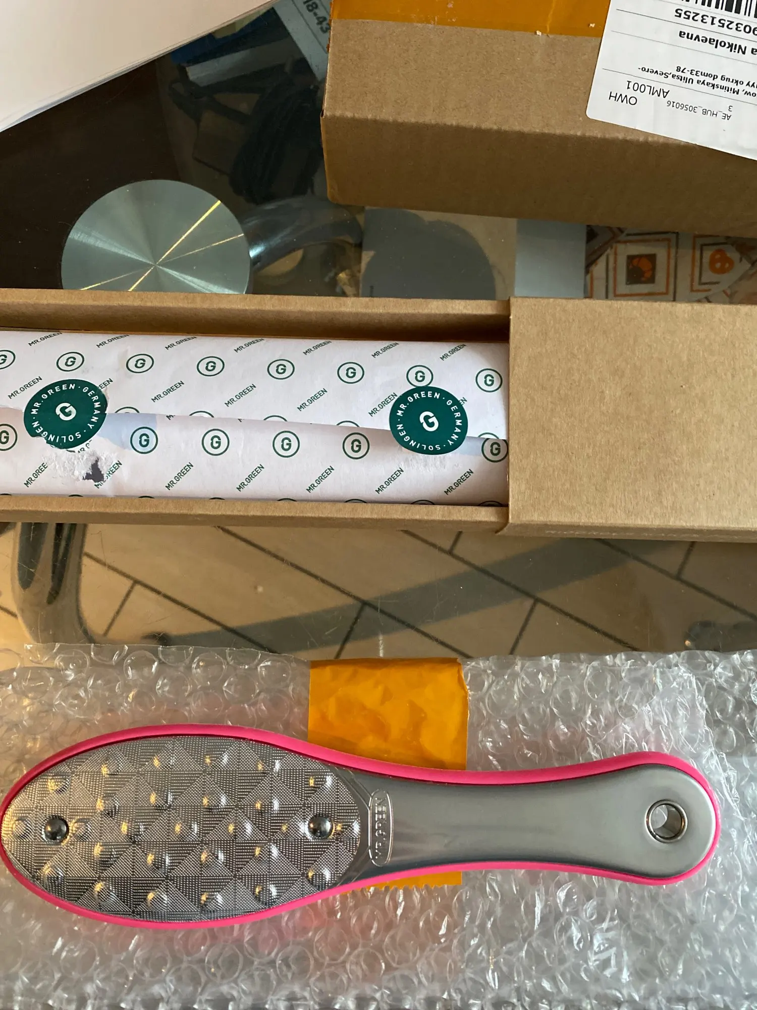 Спасибо за оперативную доставку. 11.11. заказал, а 30.11. получил в 32 регионе. Пришел заказ может и раньше, но почта не удосужилась прислать извещение. О товаре: размещен хоть и в простенькой, но фирменной коробочке. Сама чесалка для пяток выглядит аккуратно, не ширпотреб. Довольно увесистая, трущие лезвия качественные. Как будет в работе - посмотрим. Так что продавца и его товар рекомендую.