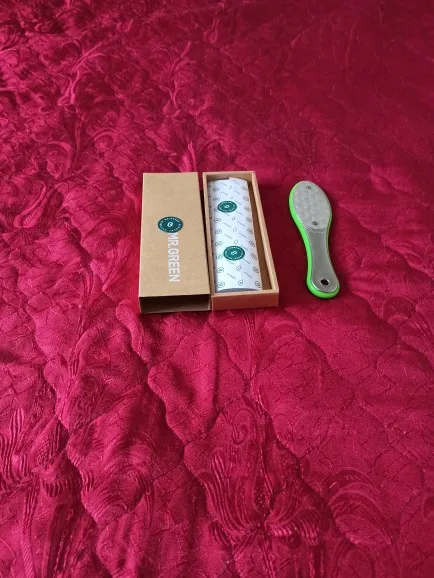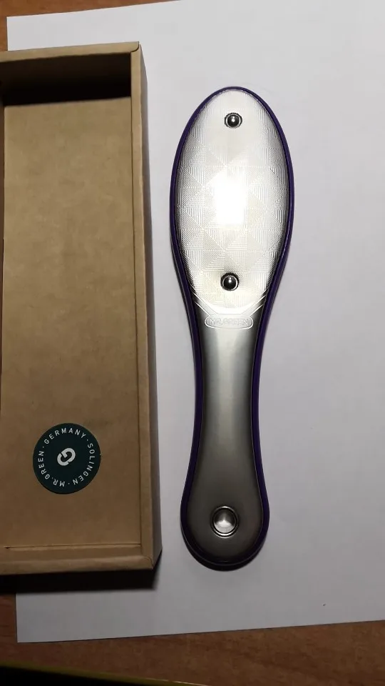 Великолепная пилка с лазерной заточкой, одна сторона снимает ороговевшую кожу быстро и без усилий, вторая - заполировывает. Не знаю насколько долго прослужит заточка, но пока это просто восторг. Упаковка заслуживает отдельного восхищения.