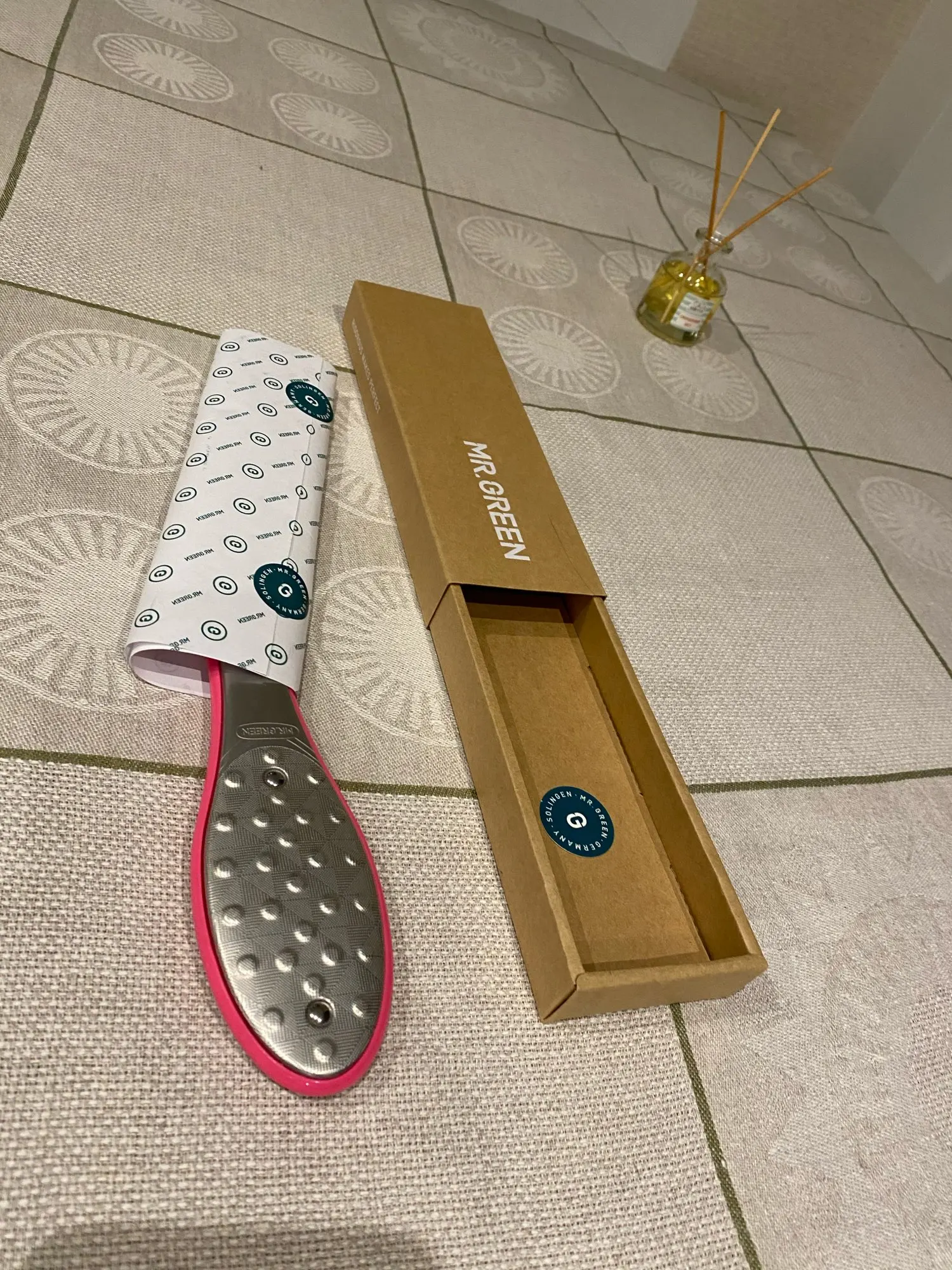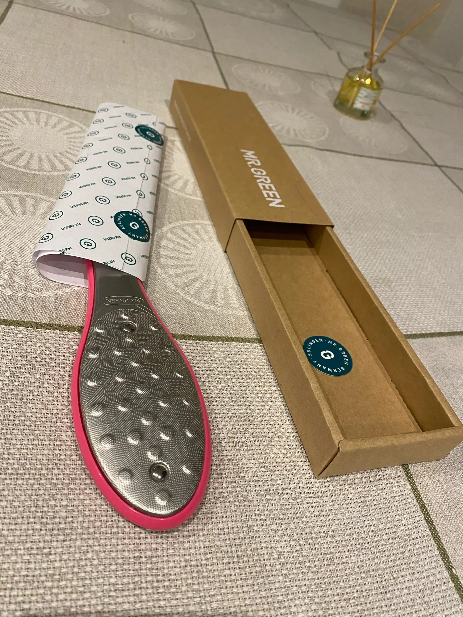 Качество продукта на высоте! Быстрая доставка курьером. Приятная стоимость в сезон распродаж) Фирменная упаковка, отличная идея для подарка. Благодарность продавцу! Не просто «наждачка», а незаменимая вещь для домашнего педикюра!