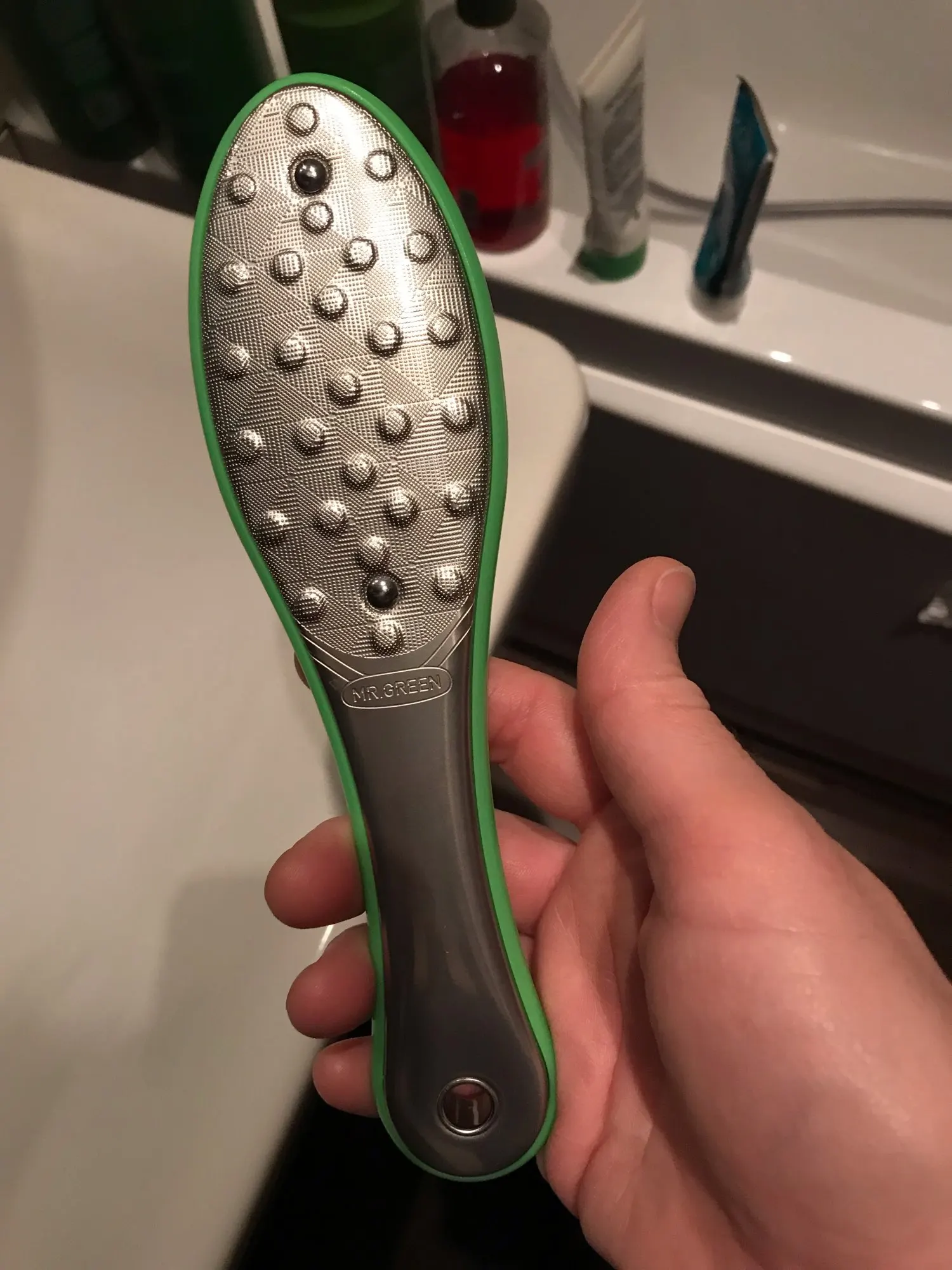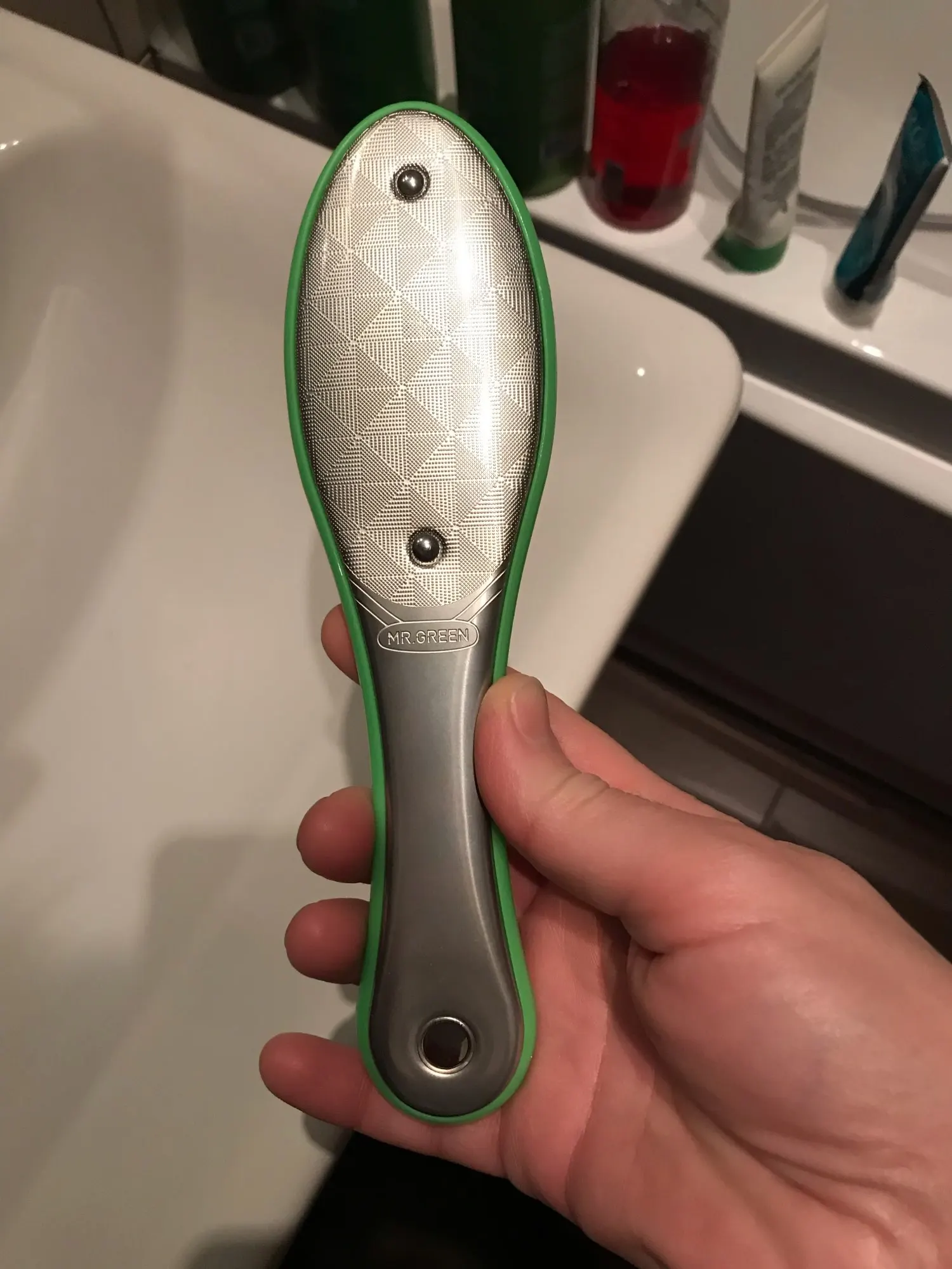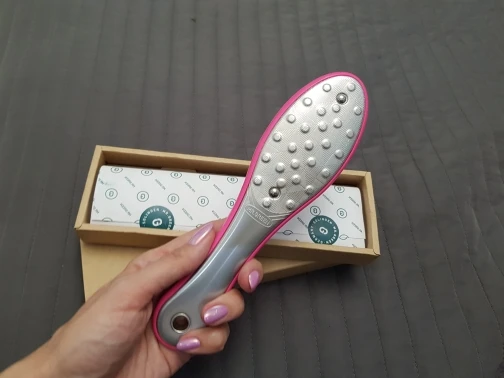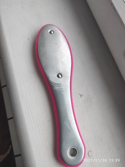 Даже на ощупь понятно, что будет хорошо тереть пятки. Натоптыши стирает в мелкую пудру. Прям горочку пудры натерла с одной пятки. После использования тёрки кожа гладкая без шершавости. Рекомендую