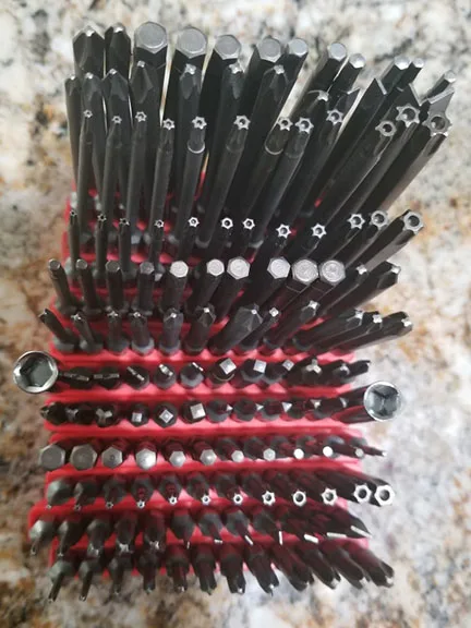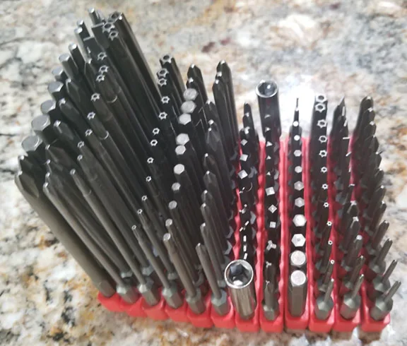 Доставка месяц. Завернули в политиленовые пакеты. На некоторых битах следы коррозии и ржавчины. На пакетах капли воды.