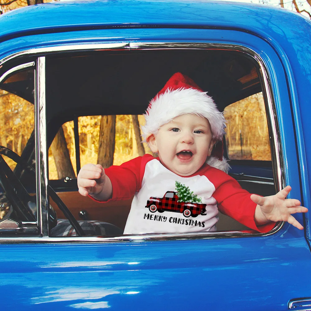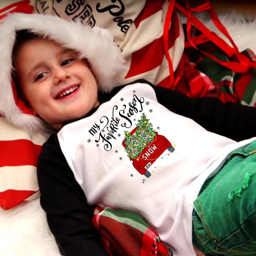 Рождественские детские футболки с длинным рукавом реглан для малыше...