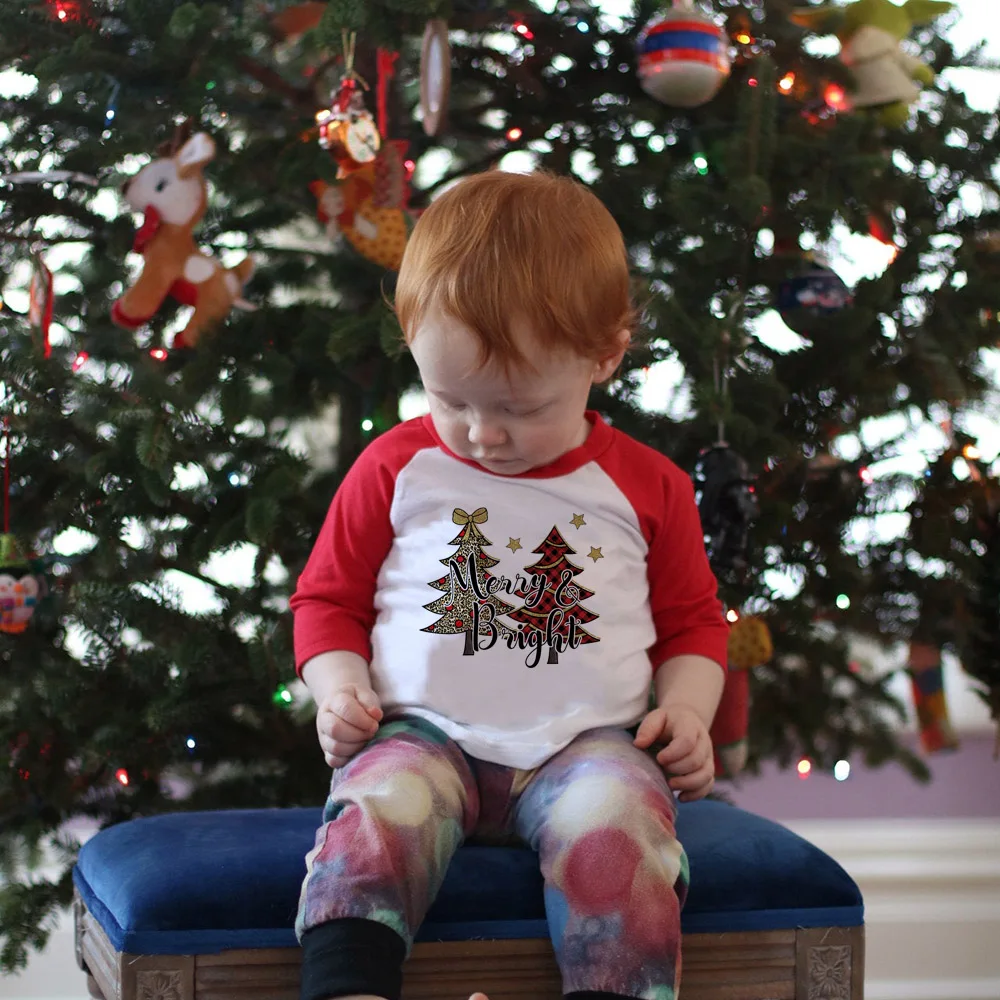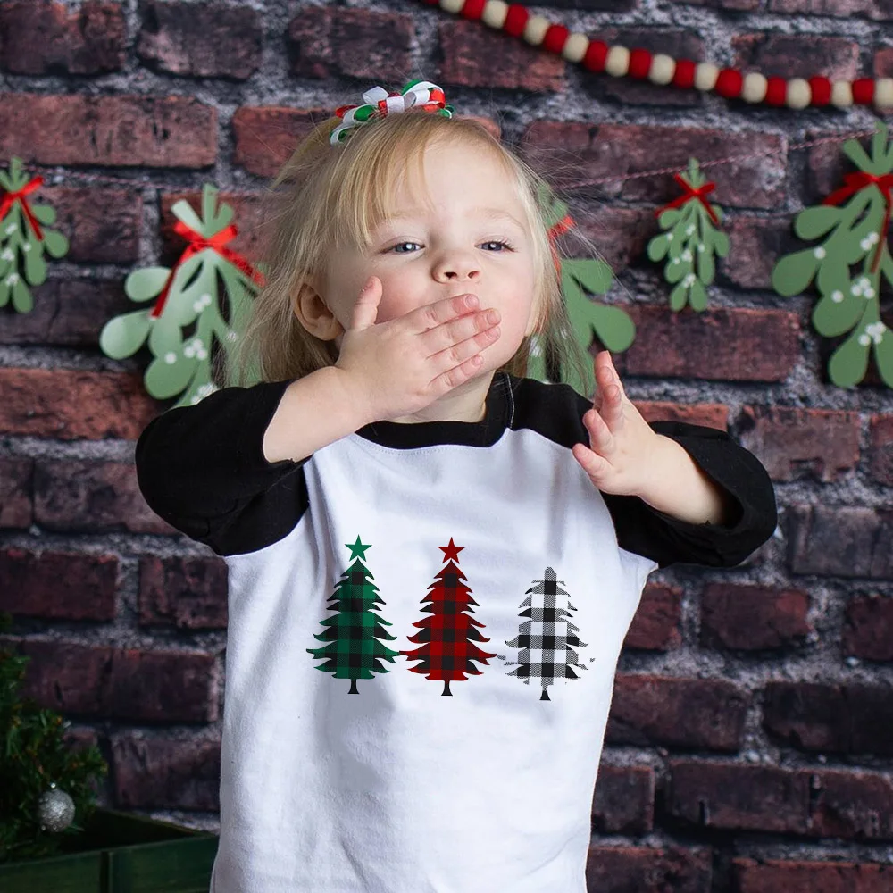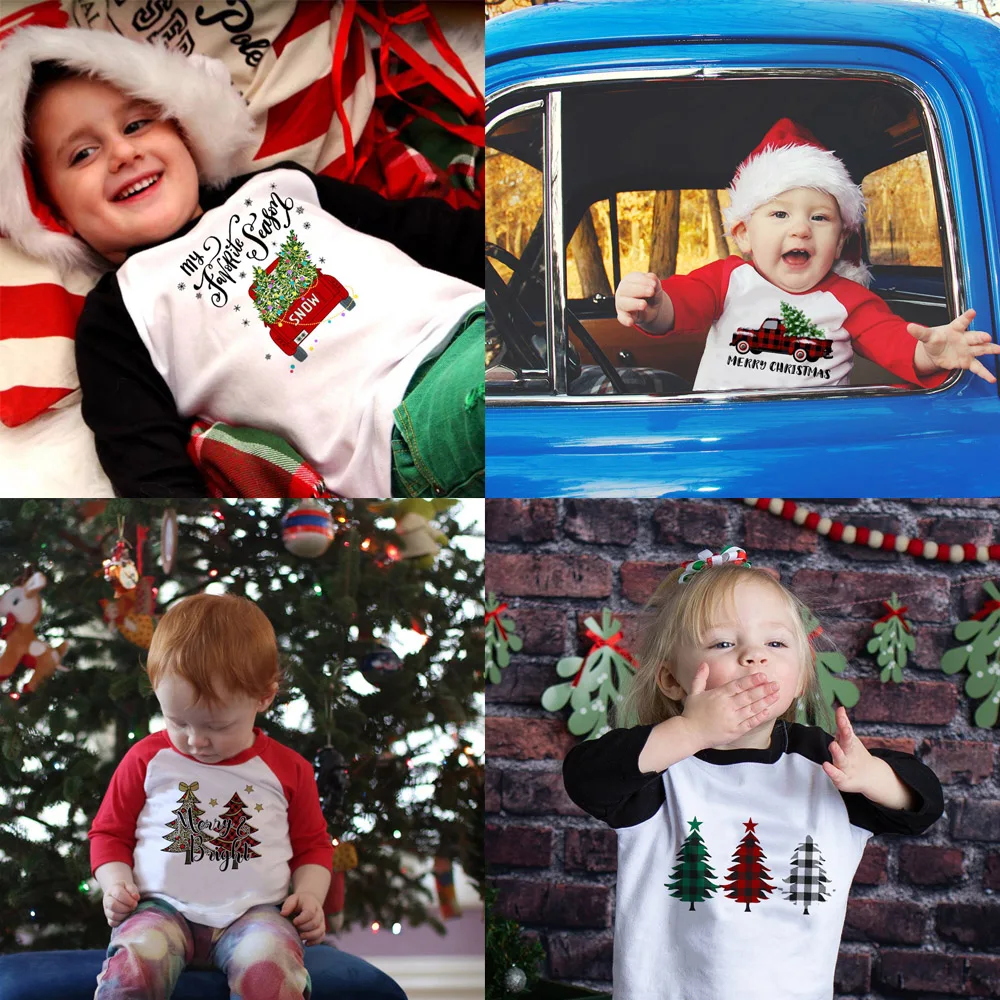 Рождественские детские футболки для мальчиков и девочек, футболки с принтом рождественской елки, футболки с длинным рукавом реглан, унисекс футболки, Рождественская одежда