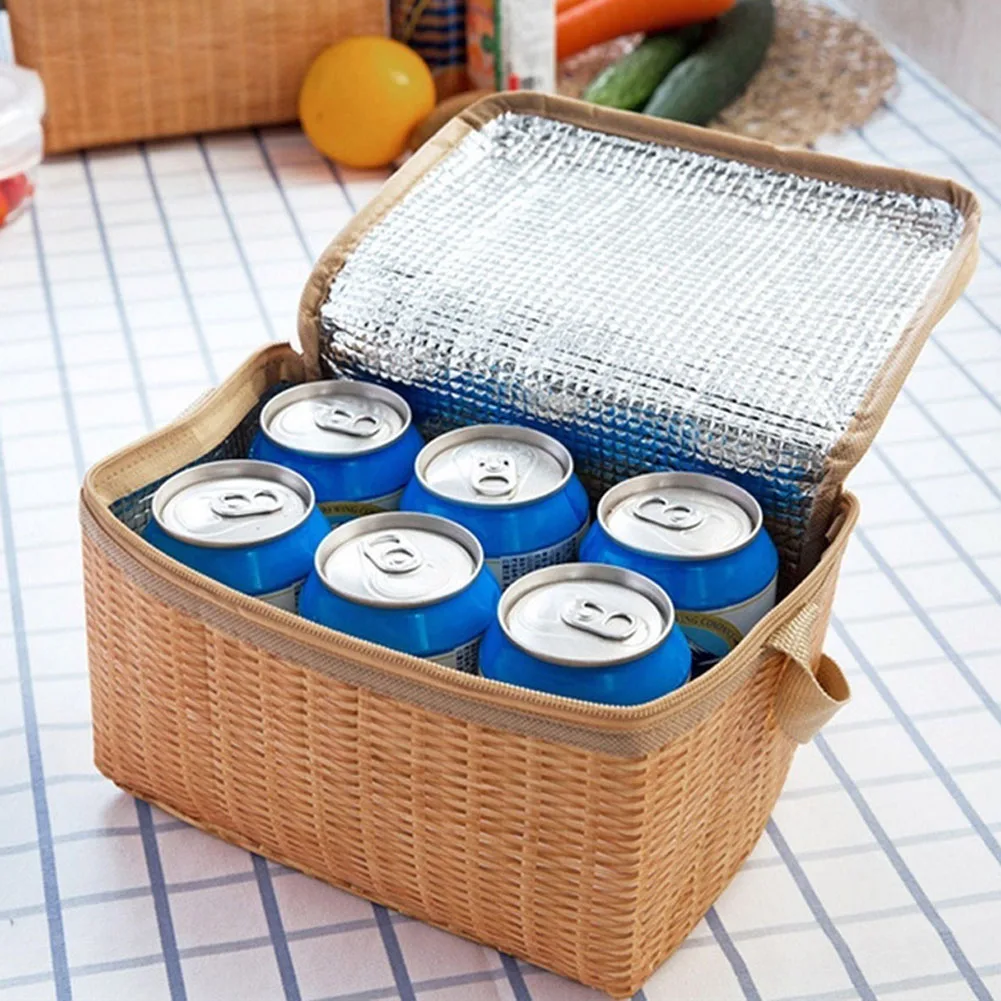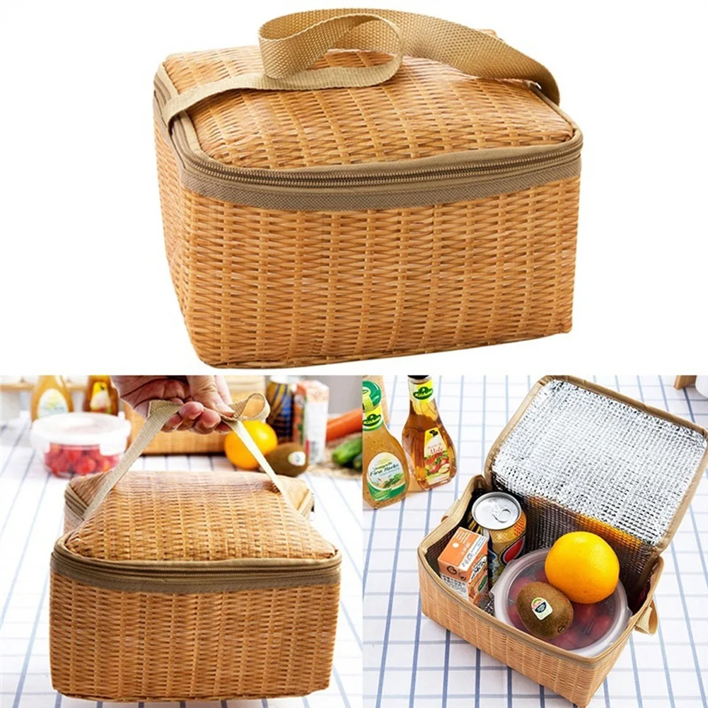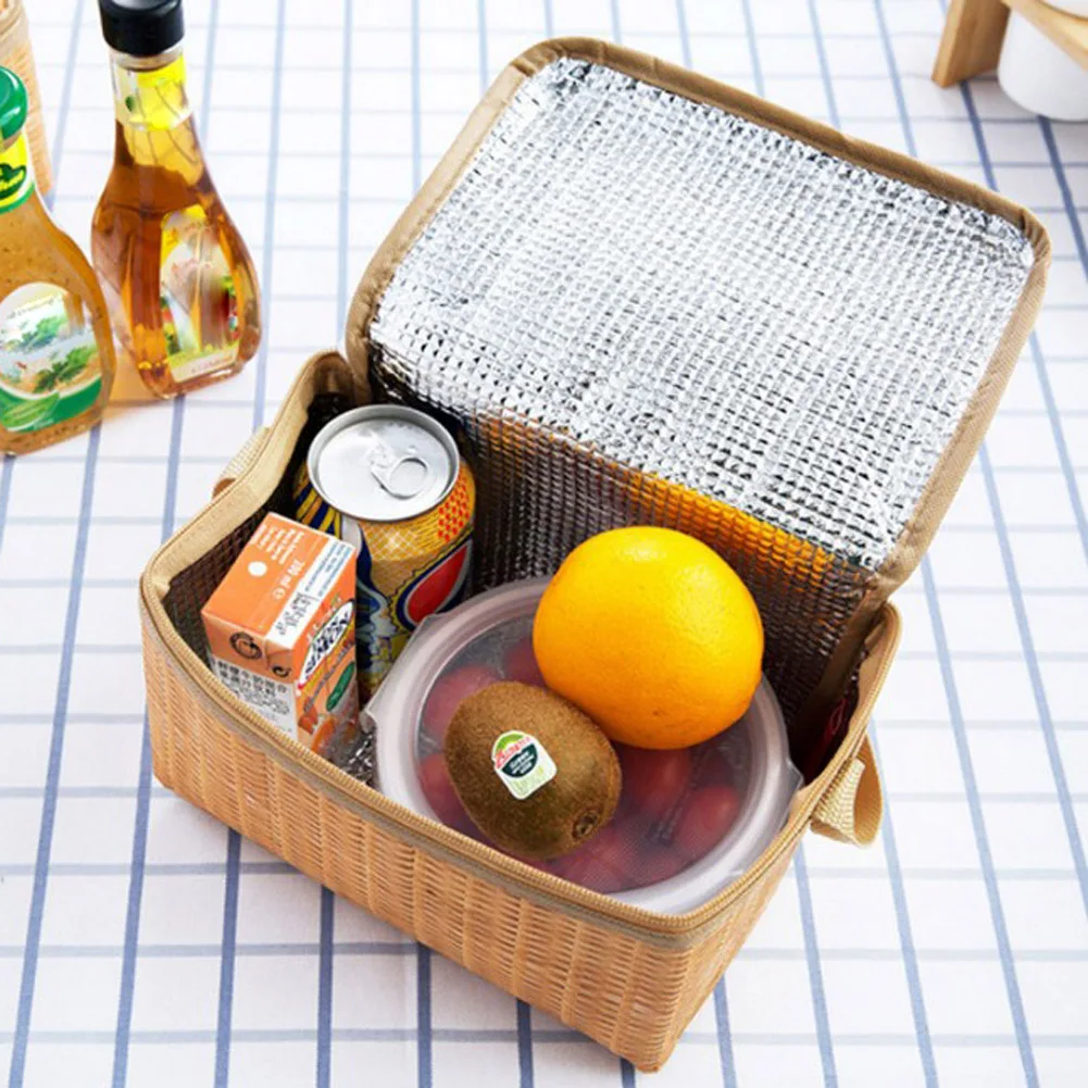 Сумка для ланча из имитации ротанга, портативный водонепроницаемый ...