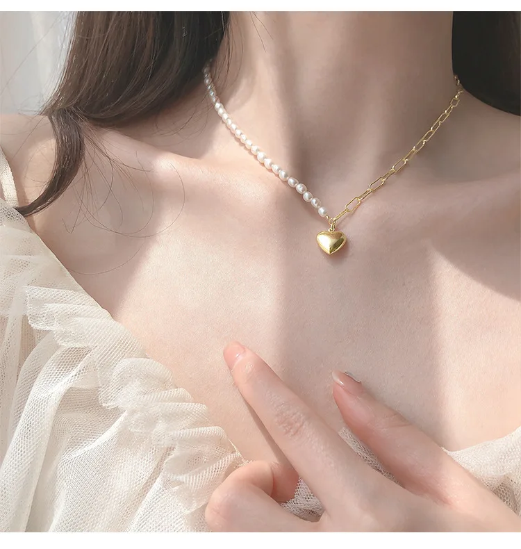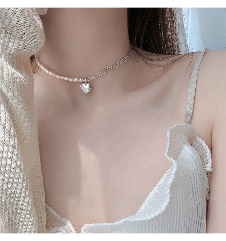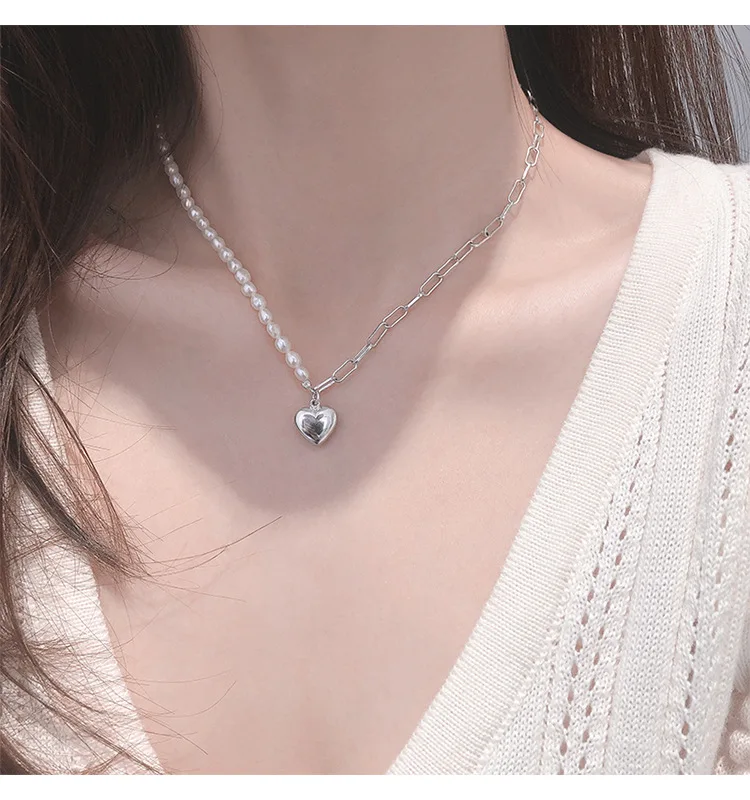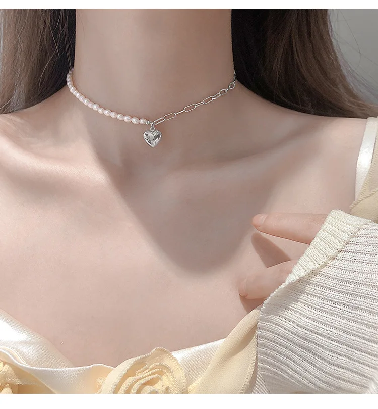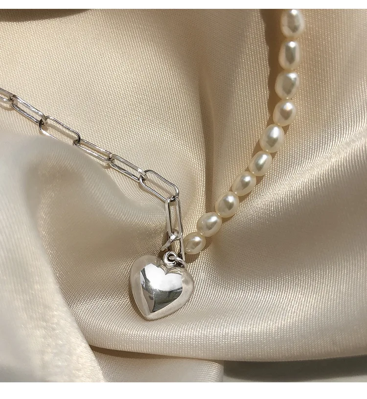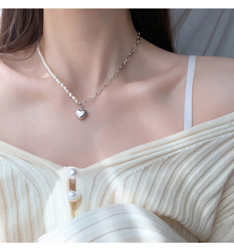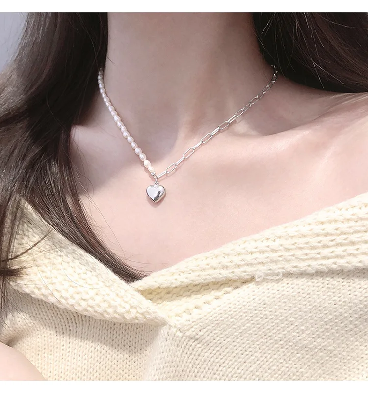 Женское Ожерелье-чокер из стерлингового серебра 925 пробы с жемчугом и лаком, вечернее ожерелье-Асимметричная цепь, подарочное Ювелирное Украшение, S-N693