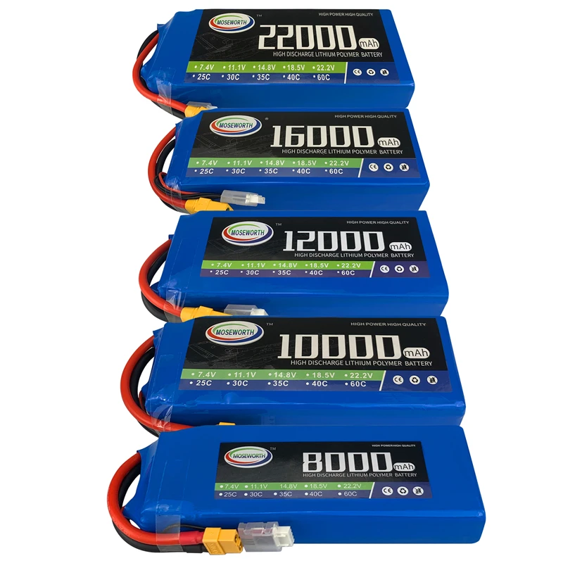 RC LiPo Battery2S 7,4 V 3S 11,1 V 4S 14,8 5S 18,5 V 6S 22,2 V 8000mAh 25C 35C для радиоуправляемых вертолетов, самолетов, автомобилей, лодок, квадрокоптеров, сельскохозяйственных самолетов, батарей
