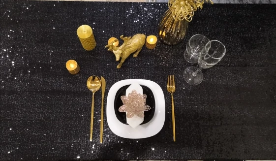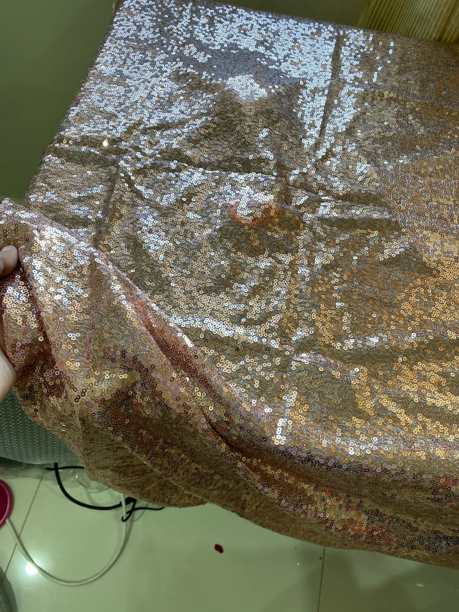 Статерть отличного качества, при распаковке был небольшой партой мусор с краёв скатерти. Думаю после стирки, мусора не будет. Скатерть смотрится очень красиво. Фото всей красоты не передаёт. При сервировка стола на скатерть можно положить гирлянду, огоньки будут отражаться в пайетках,роматкика обеспечена. Спасибо продавцу за быструю доставку! Думаю заказать ещё в золотом цвете)