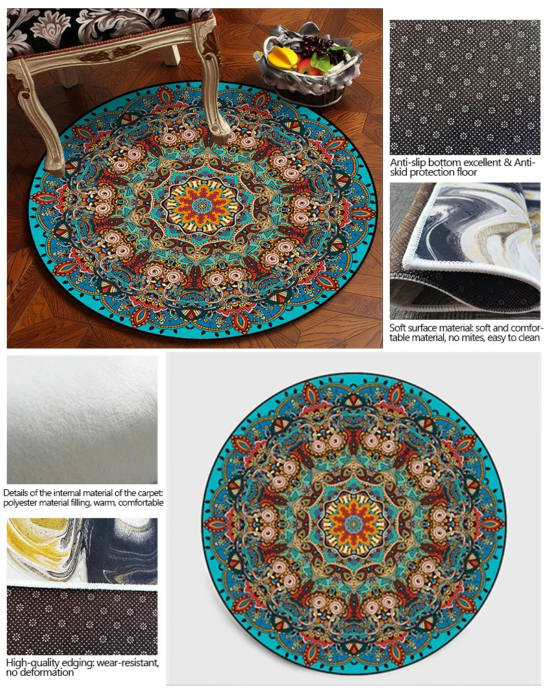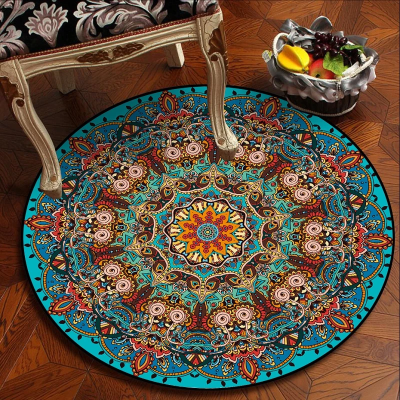 Круглый ковер в этническом стиле с изображением поцелуя из пузырей, Противоскользящий коврик для ног для гостиной Datura с цветочным узором, Домашний Декоративный Напольный коврик для спальни