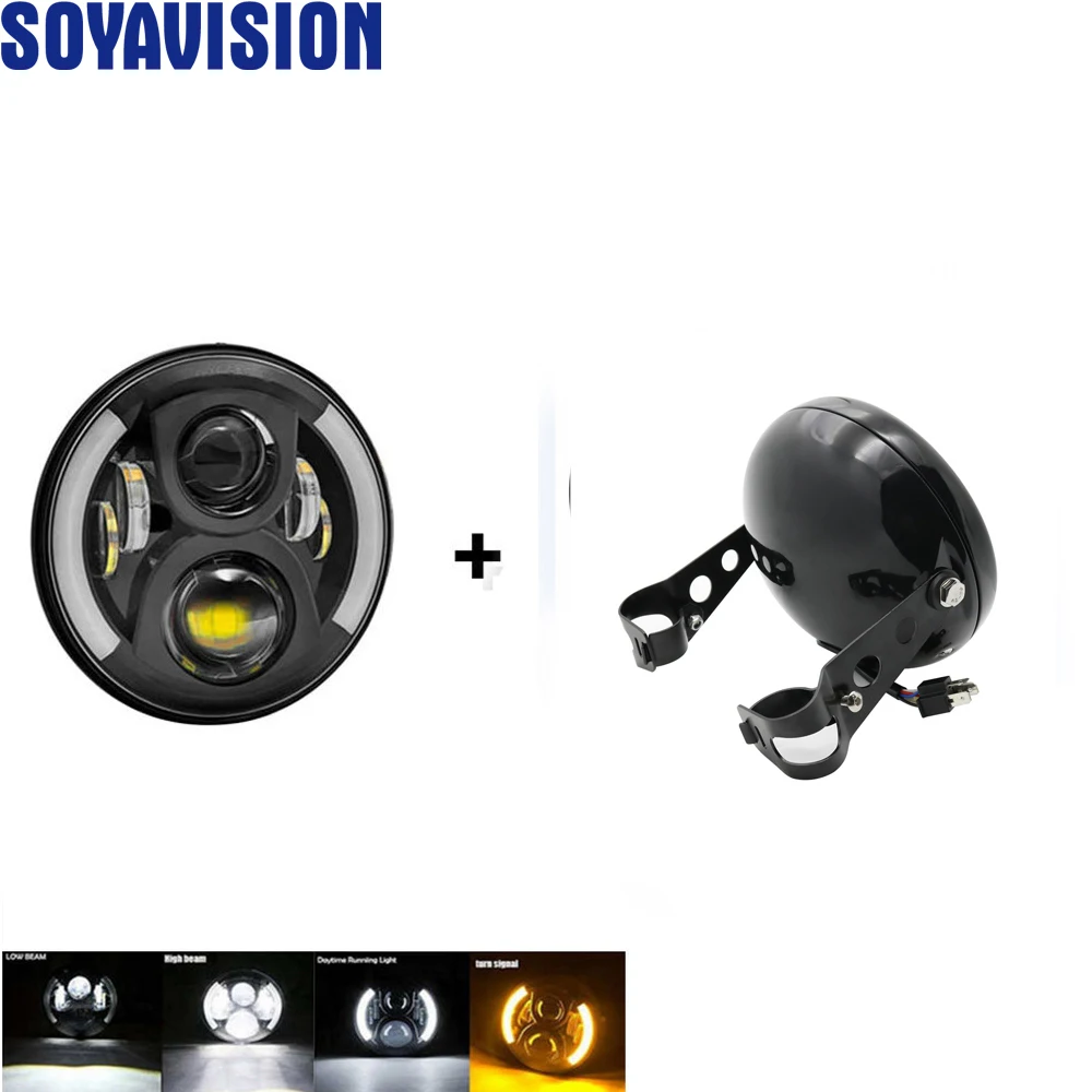 Универсальная 7-дюймовая светодиодная фара H4 для мотоцикла Harley hornet 600 Honda cb400 cb1000sf kawasaki ER6N с корпусом фары DRL