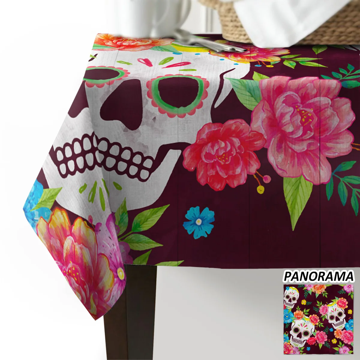 Полотно, мешковина, настольный бегун, Мексиканский череп, соломенна...
