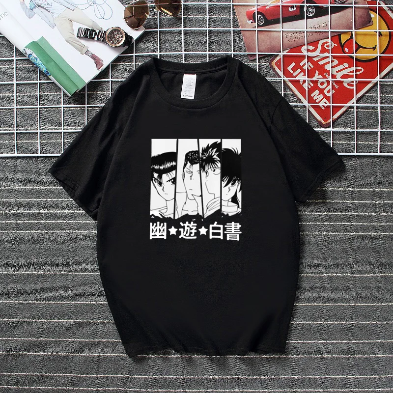 Новинка, футболка с Аниме Манга Yu Hakusho, хлопковая футболка с короткими рукавами Yusuke Urameshi, футболка Kazuma Kuwabara, рубашки Kurama Hiei, топы