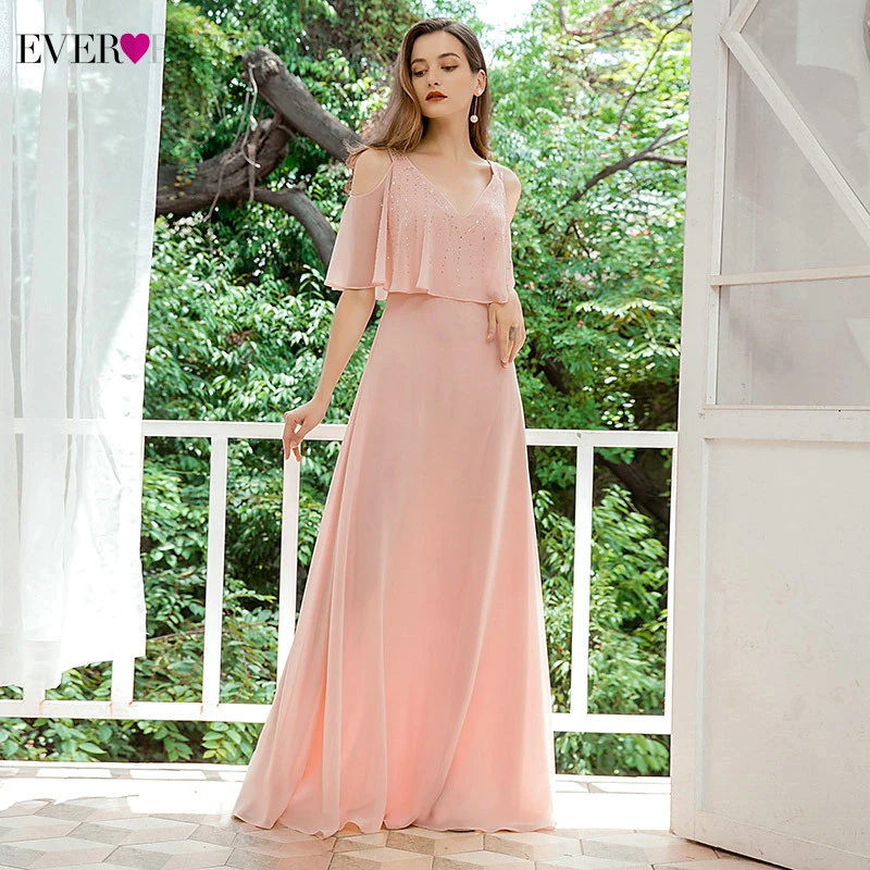 Платье подружки невесты Ever Pretty, шифоновое элегантное розовое д...