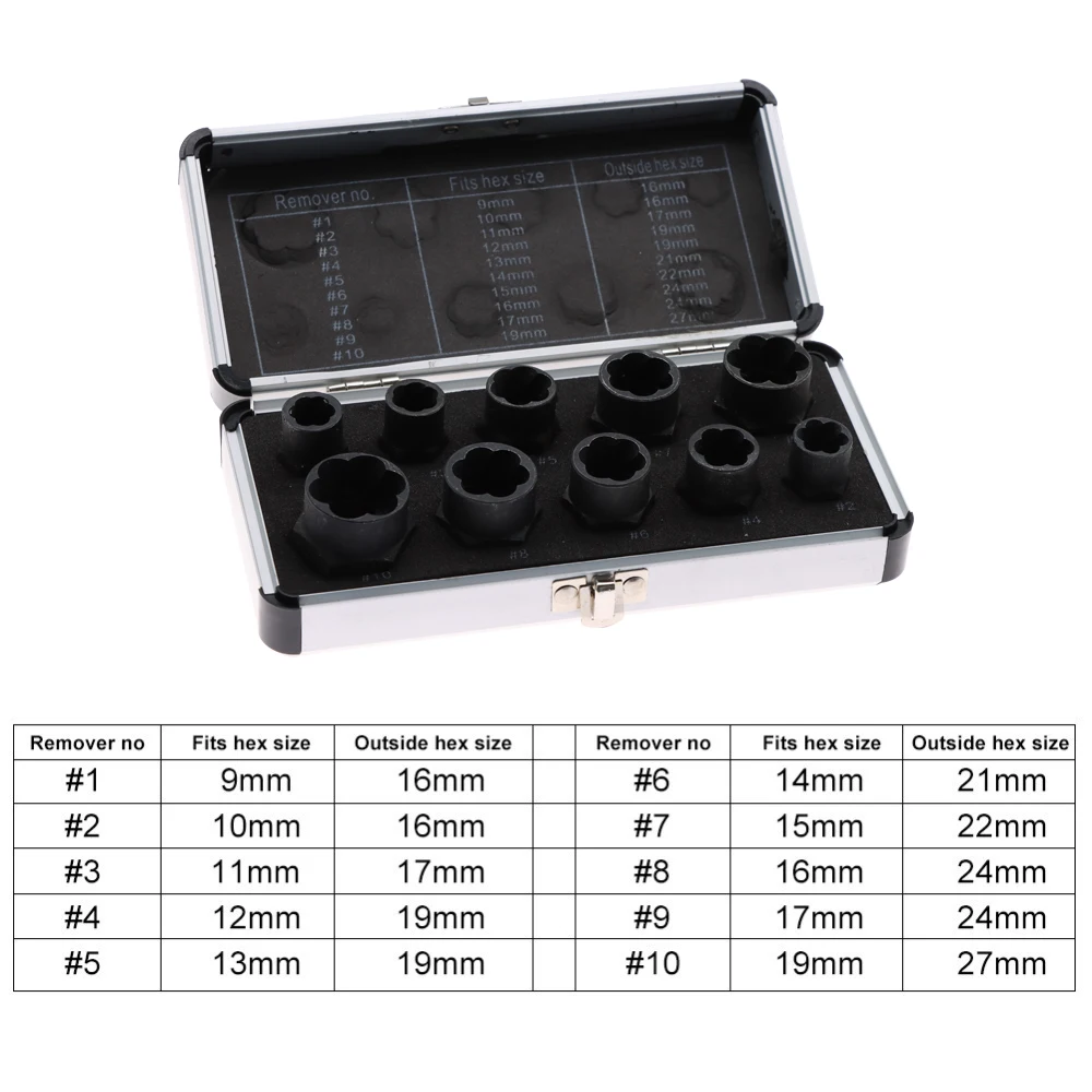 Набор инструментов для удаления поврежденных болтов, гаек, винтов, экстрактор, 9-19 мм, 10 шт.компл.