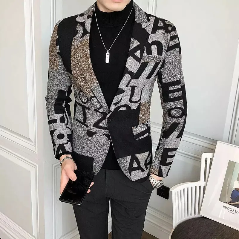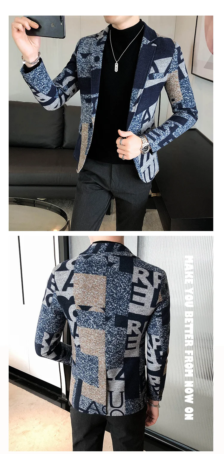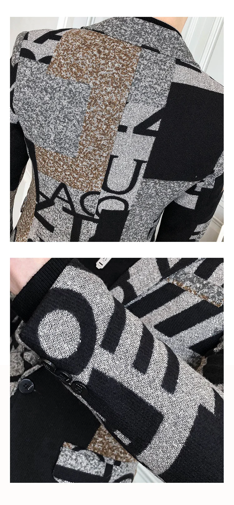 Твидовый пиджак мужской с большими буквами, приталенный Блейзер из шерсти и твида, для вечеринки, выпускного вечера, клуба, Осень-зима 2020