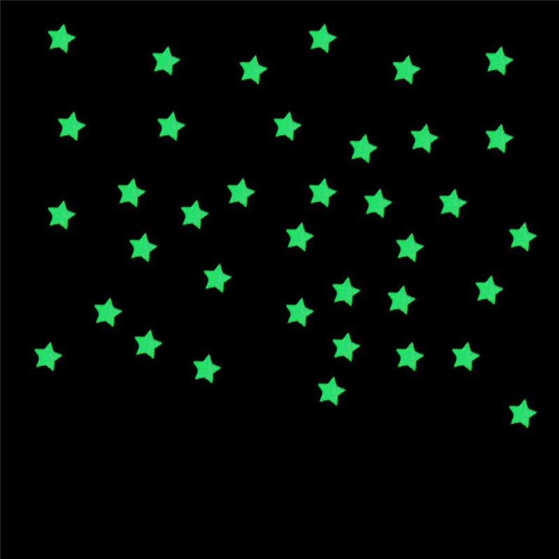 Новинка, Лидер продаж, светящиеся флуоресцентные Пластиковые наклейки 3D со звездами, 100 шт., декор для гостиной, детской комнаты