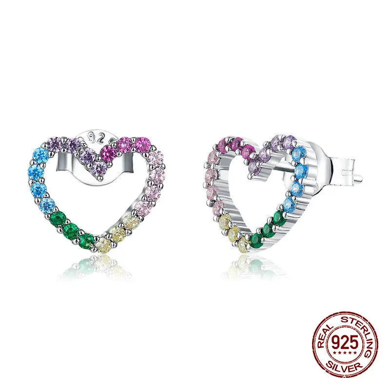 Женские серьги-гвоздики из серебра 100% пробы с радужным цирконием