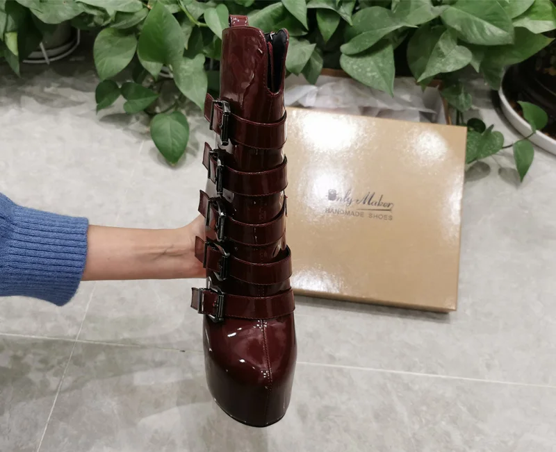 Женские ботинки Onlymaker, с круглым носком, на платформе, с боковой молнией, на тонком толстом каблуке, короткие ботинки, большой размер