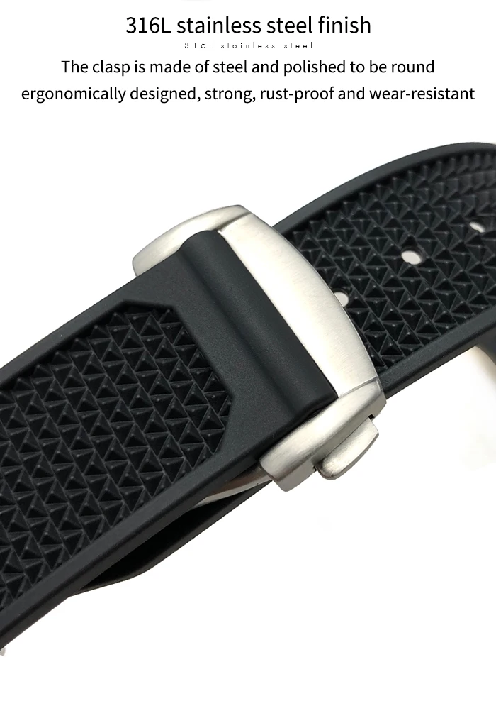 Силиконовый ремешок для часов, 202122 мм, из нержавеющей стали