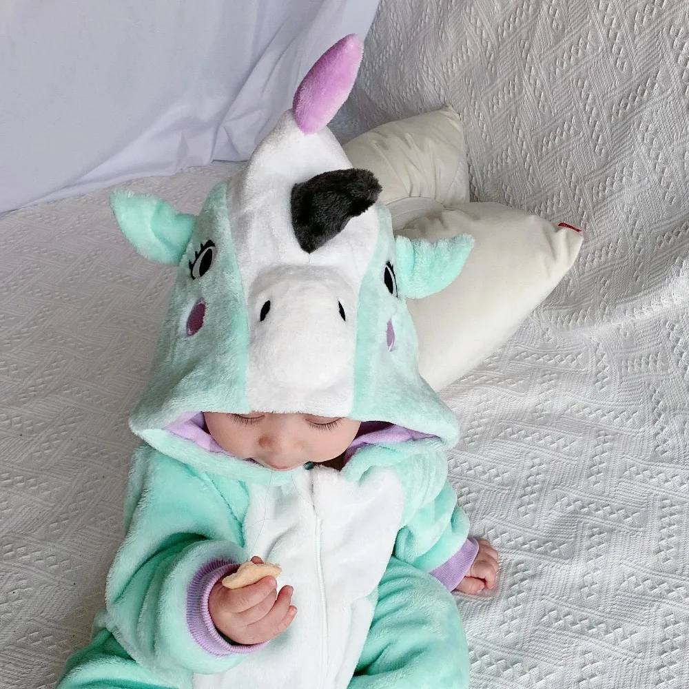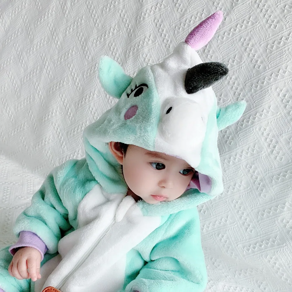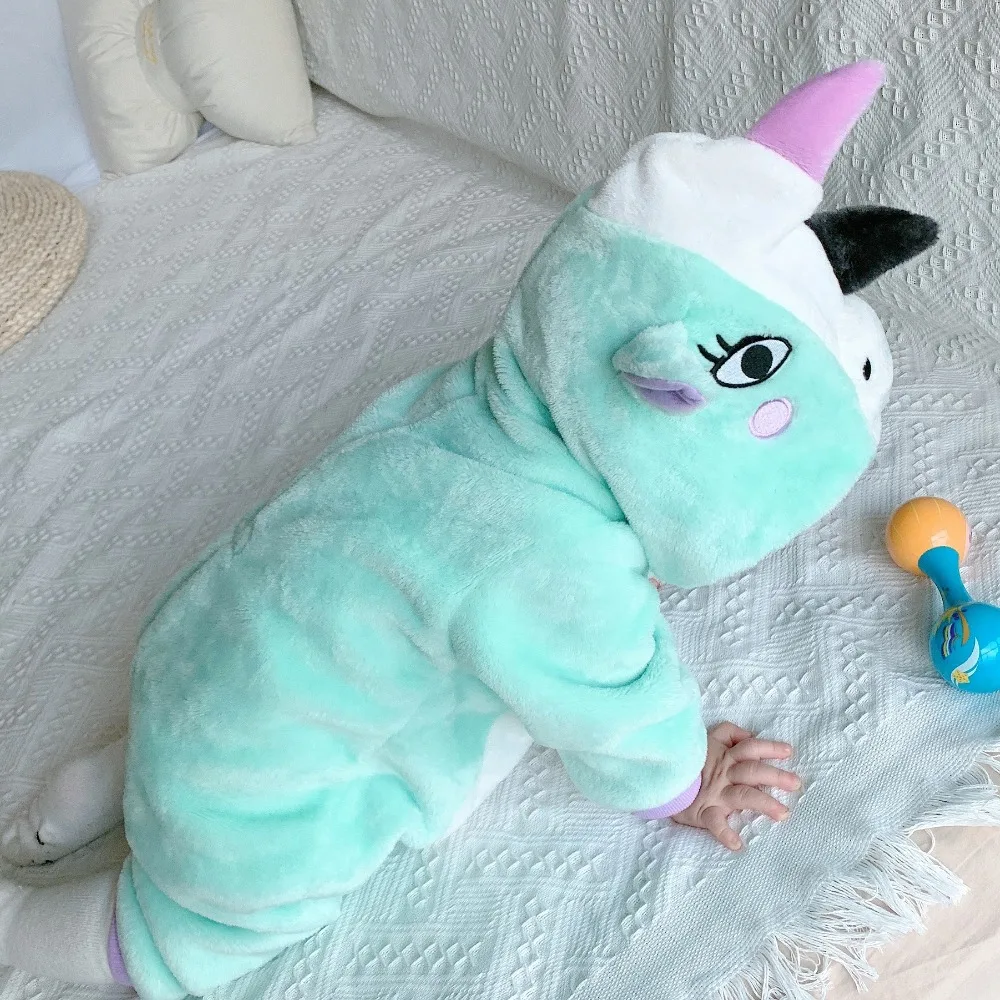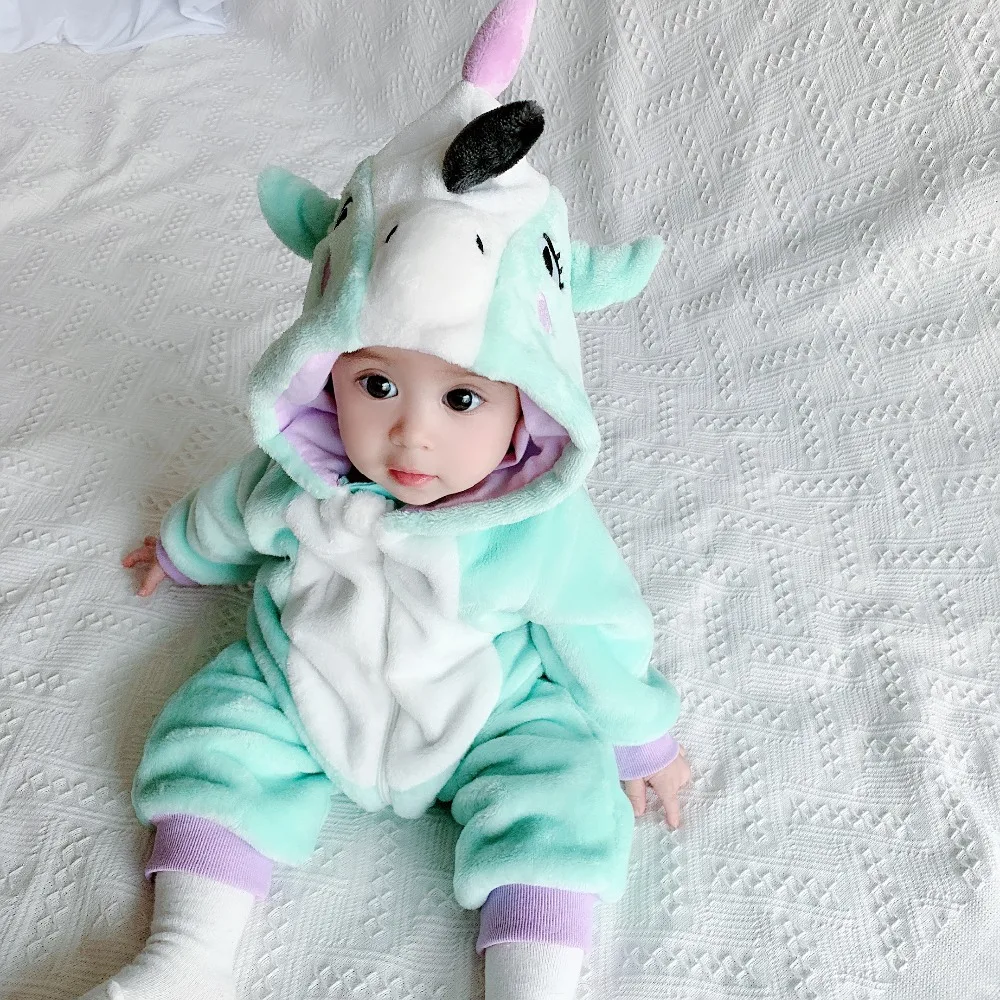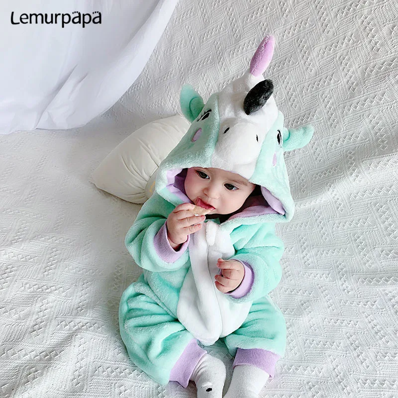 Зимняя детская одежда, комбинезон, комбинезон для новорожденных, мальчиков и девочек, комбинезоны с мультяшным единорогом, фланелевая теплая мягкая одежда для младенцев