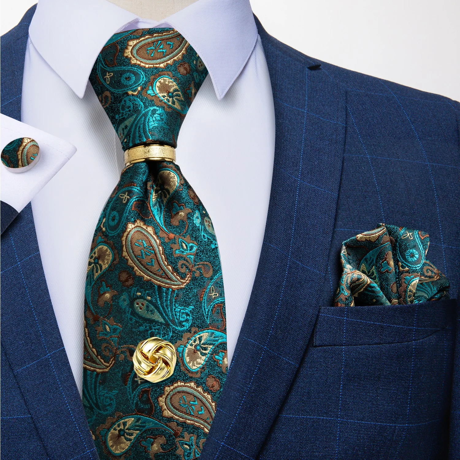 DiBanGu дизайнерский мужской галстук с зеленым узором Пейсли Полосатый Свадебный галстук для мужчин кольцо Hanky запонки шелковый галстук Набор для деловых вечеринок