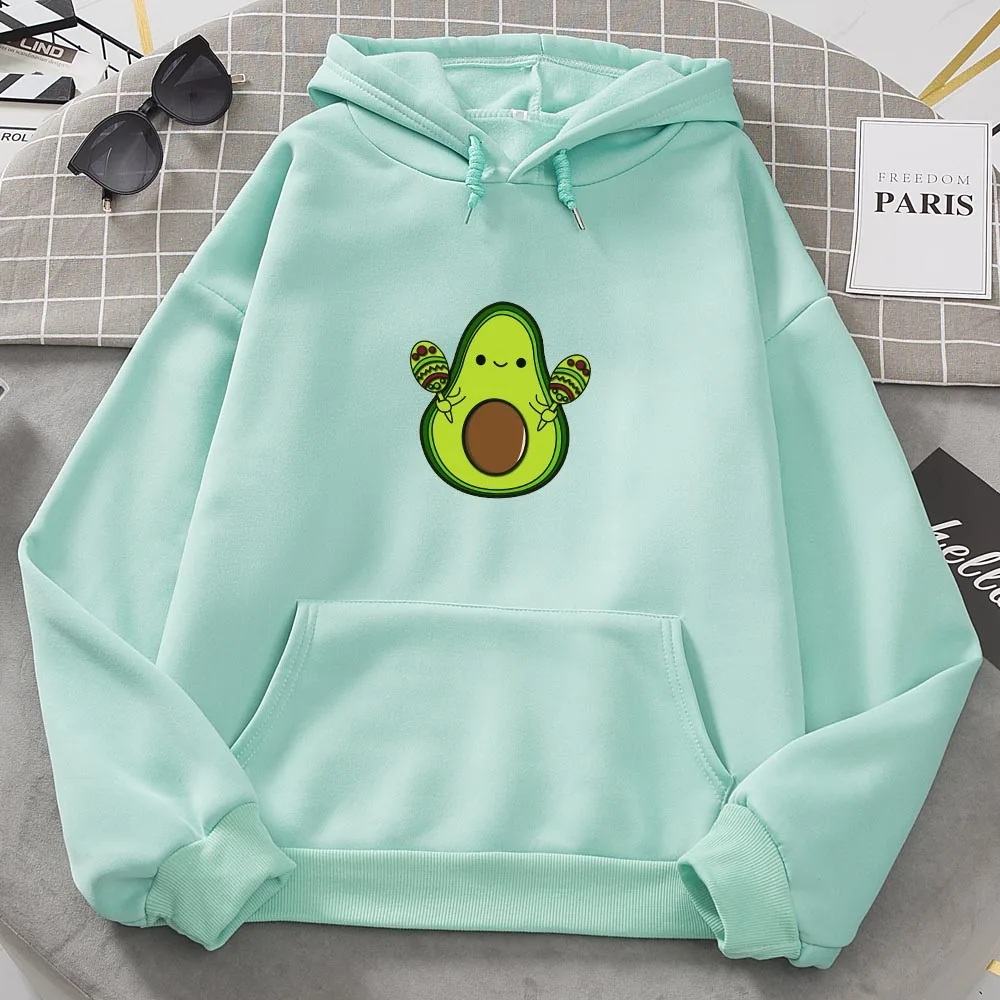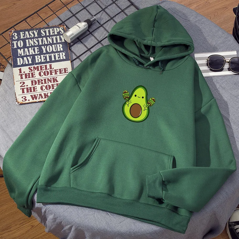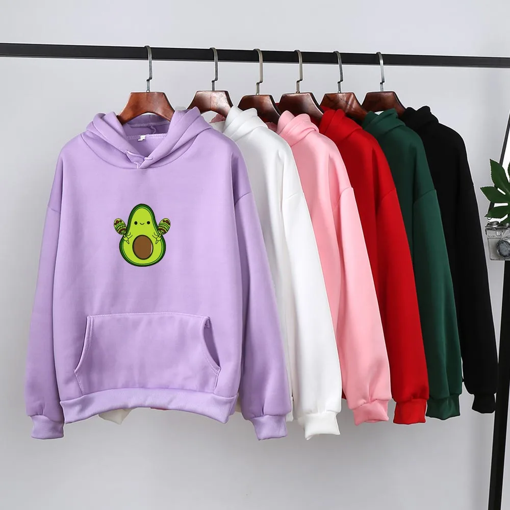 Женские толстовки с принтом авокадо, Толстовка Оверсайз с длинным рукавом, Женская Толстовка в стиле Харадзюку, милый графический пуловер с карманами в стиле K-POP, одежда