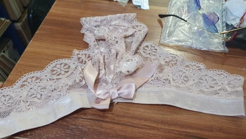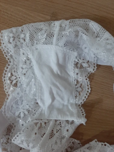 на 90 брала м. кружева свободные, не сильно прилегают. могут и топорщиться. шов упирается в писечку. так себе. бант не ровный, местами торчали нитки