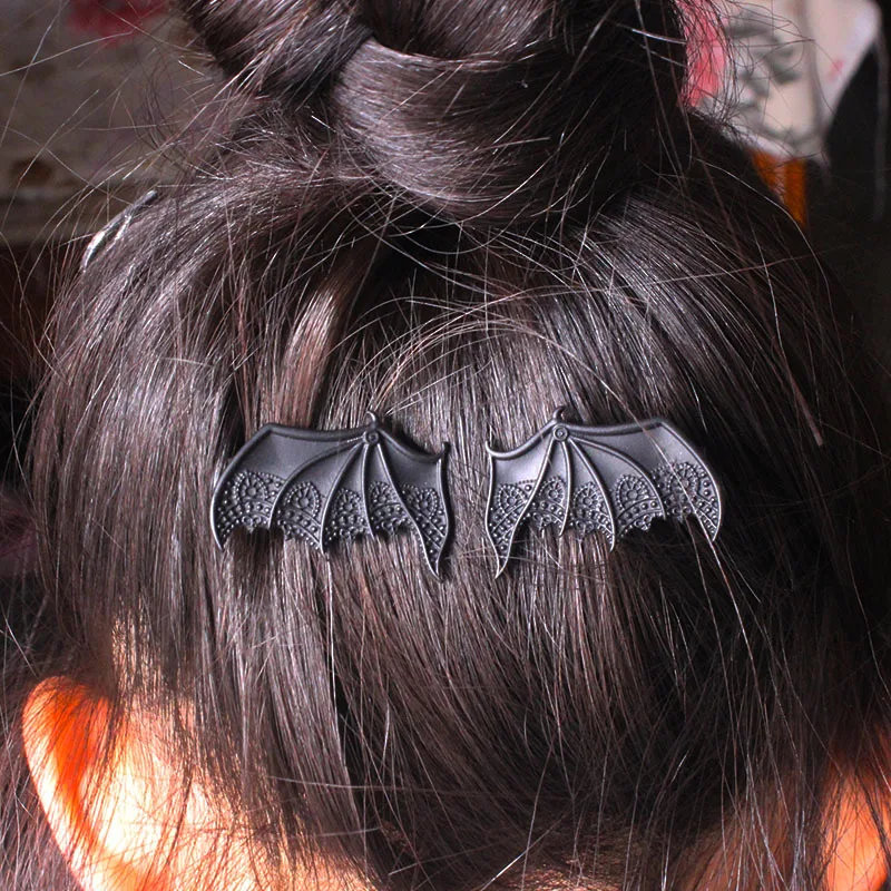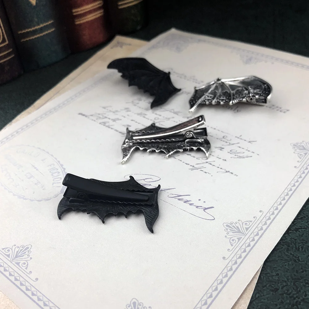 Женский орнамент, неглазурованный Черный Античный Серебристый Темный граф, вампир, демон крылья, заколка для волос в стиле панк, летучая мышь