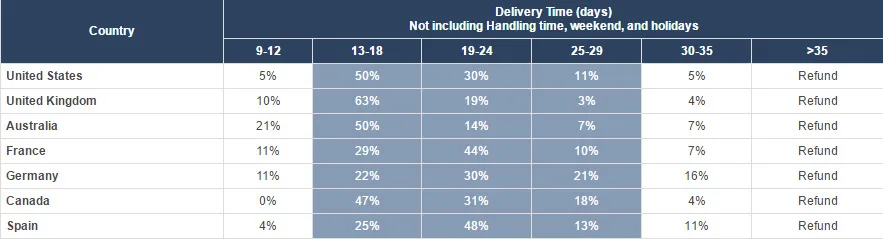 1. Мы отправляем все наши ИТ ems по всему миру в течение 48 часов заказной почтой Китая/ePacket/china post ordinary small packet/DHL/EMS.2. Иногда это может занять до 4-7 недель из-за Строгой Таможенной проверки.3. Время доставки определяется перевозчиком и не включает выходные и праздничные дни. Сроки доставки могут меняться, особенно во время курортного сезона.4. Мы осуществляем доставку только по подтвержденным адресам заказа.Адрес Вашего заказа должен совпадать с адресом доставки.5. После отправки на почту (если покупатель ожидает получения товара), мы больше не можем изменять адрес, поэтому, пожалуйста, проверьте адрес перед ним.6. Если вы не получили посылку в течение 40 дней с момента оплаты, пожалуйста, свяжитесь с нами. Мы ответим вам в кратчайшие сроки. Наша цель – удовлетворение клиентов!