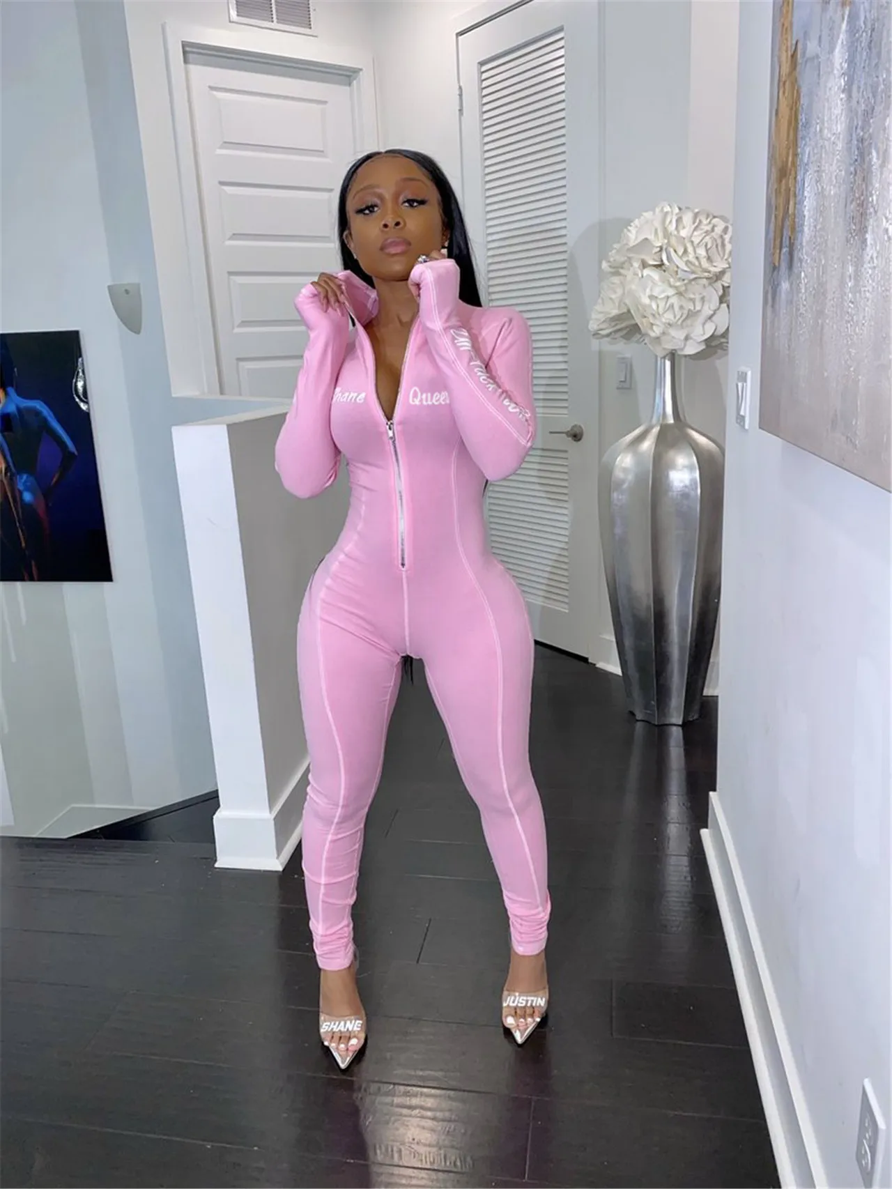 Echoine Женский Повседневный спортивный комбинезон с длинными рукавами на молнии с буквенным принтом в полоску сбоку Combinaison Femme ползунки детский комбинезон