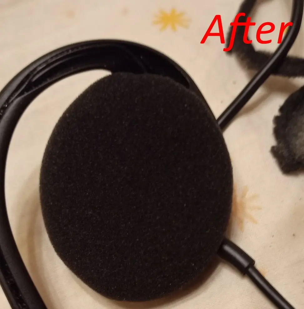 Хорошие штуки. Были уложены в пакет кое-как и после распаковки оказались мятыми, но я положил их в тот же пакет аккуратно и за несколько дней они полностью распрямились. Имеют широкий запас на задней стороне, но если потребуется, то можно подрезать, что я и сделал. В общем, заменил на своих наушниках - получилось отлично.