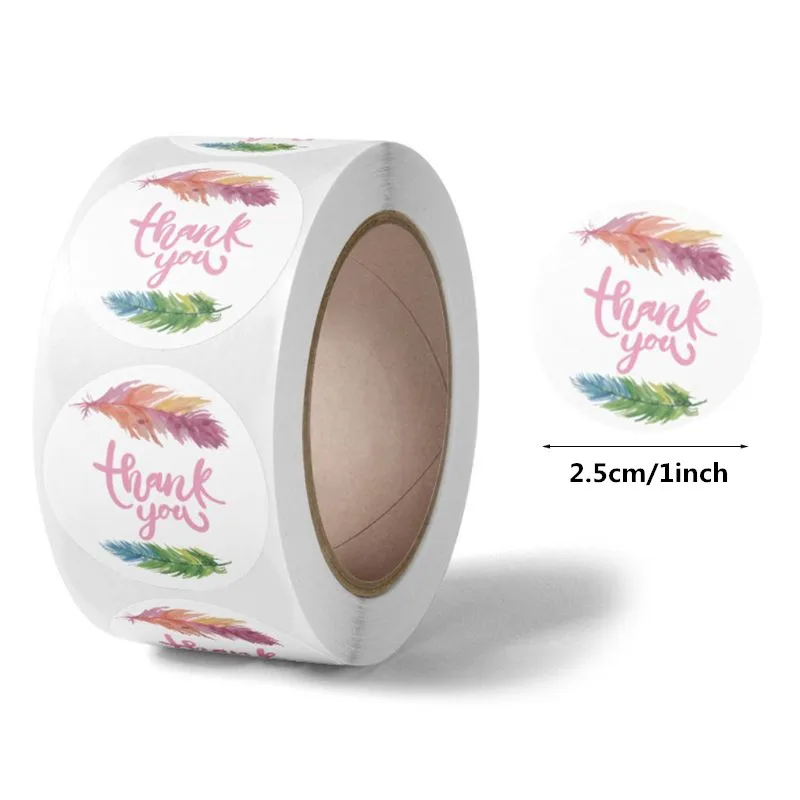 1 дюйм, 500 шт., красивый, Круглый разноцветных перьев, наклейки с благодарностью для покупок малого бизнеса, конверты, декор для упаковки этикеток
