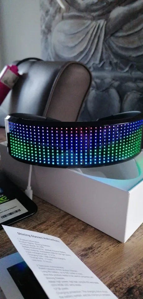 Очень классно! Они такие же, как на фотографиях, все пиксели работают хорошо. Приложение легко разобраться и имеет несколько режимов: некоторые предварительно запрограммированные анимационные текстовый вариант, в котором вы можете напечатать слова, а также режим, который показывает аудио визуализатор, который будет подскакивать к ритму песен на вашем телефоне или громким в комнате, который будет отлично подходит для концертов! Аудио обнаруживается через динамик телефона, а не сами очки. Вы также можете «нарисовать» все, что захотите, на экране. Они удобные на моем лице, изготовленные из жесткого пластика. Прибыла в США примерно через 2 недели в сверхпрочной коробке внутри пузырчатой почтовой службы.