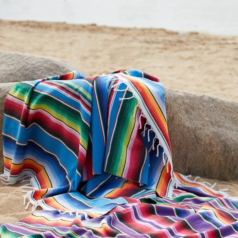 Мексиканское одеяло Serape, дорожное Радужное пляжное одеяло в поло...