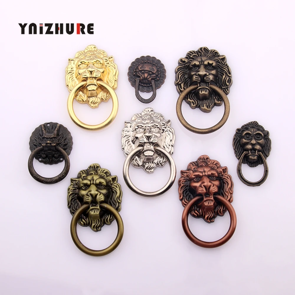 Мебельные ручки 67*43 мм зверь для головы льва, антикварная ручка из сплава, ручка для шкафа, ящика, двери, Ретро Декор, 1 шт. с винтом