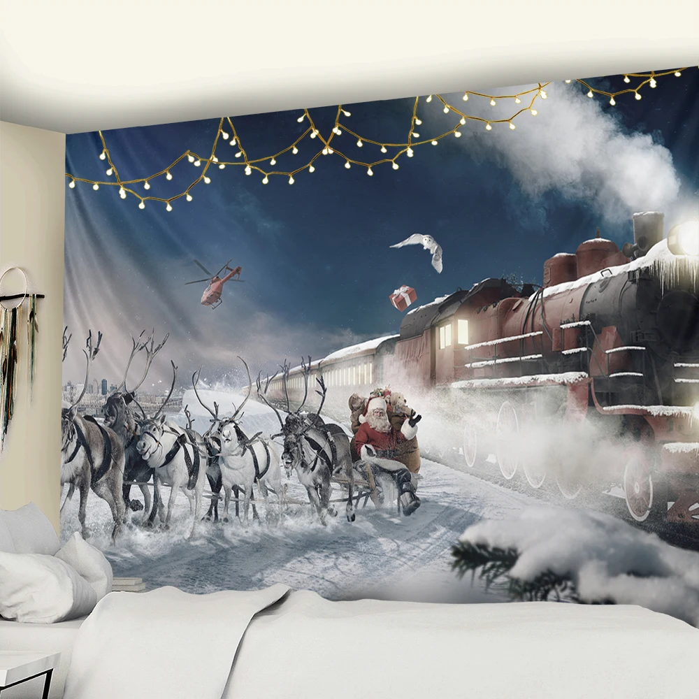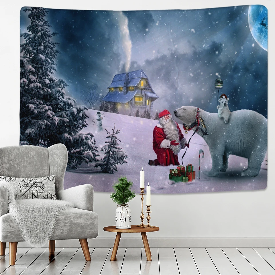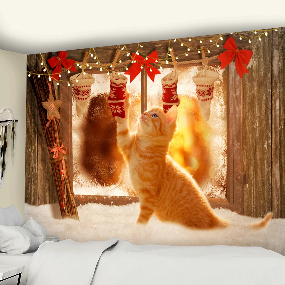 Рождественское искусство настенный гобелен Рождественская елка и кошка рождественские животные Новогодняя вечеринка украшение Олень одеяло для йоги