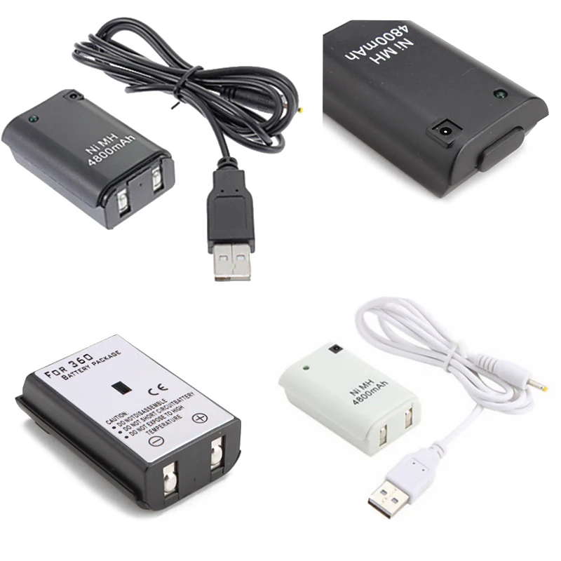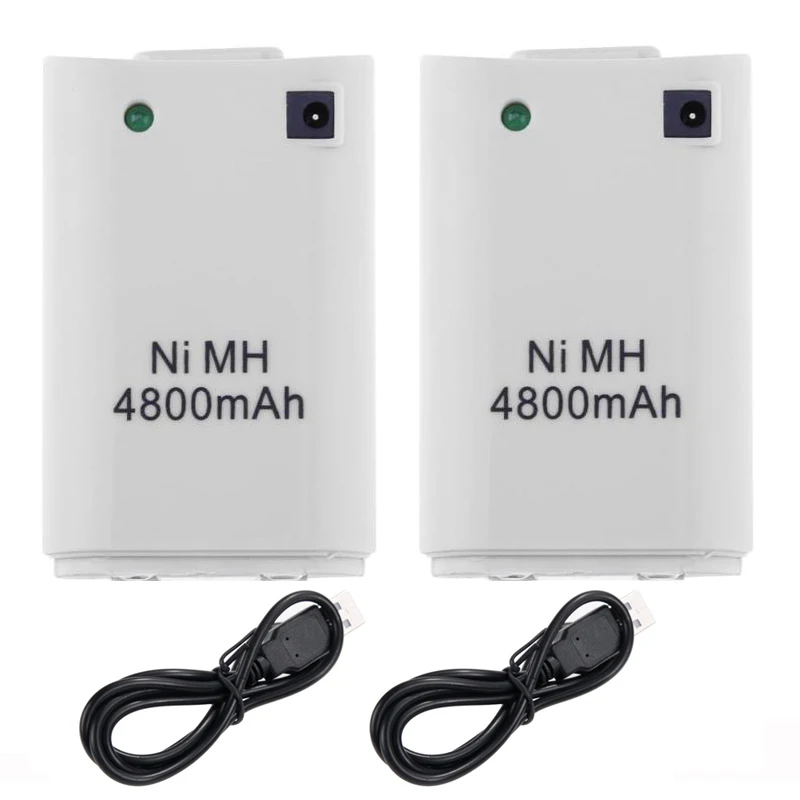2x Аккумулятор 4800 мАч + USB-кабель для зарядного устройства для Microsoft Xbox 360, беспроводной игровой контроллер, геймпад Ni MH, Сменный аккумулятор для Xbox360