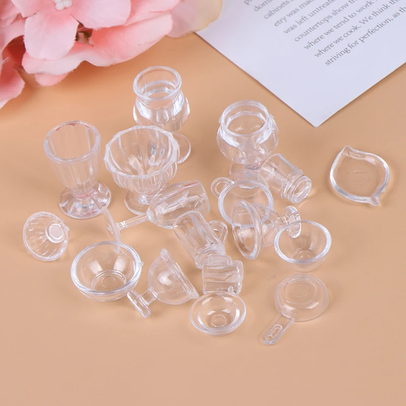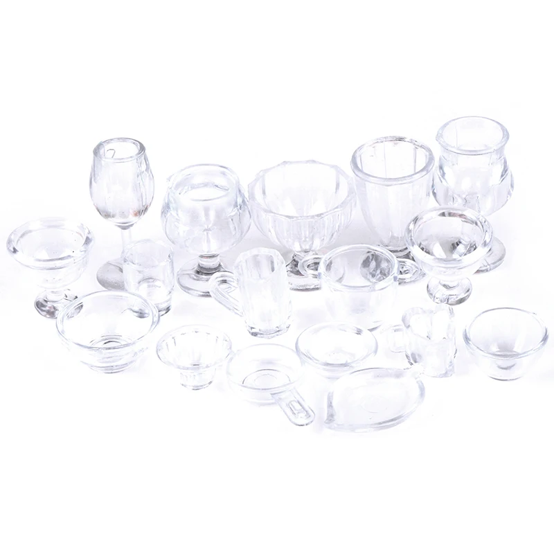 17 шт.компл. 1:12 Кукольный мини-домик, прозрачный, сделай сам, игрушечная посуда для ролевых игр, чашки для напитков, блюдо миниатюрная посуда