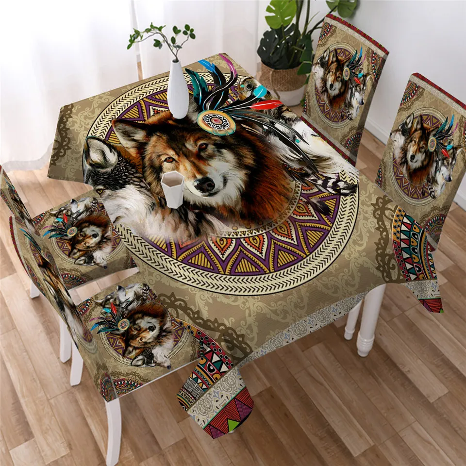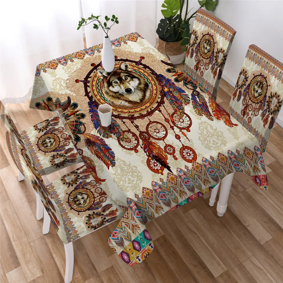 Белая скатерть Buffelo от Ismot Esha, Ловец снов, скатерть для кухонного стола Орел, волк, этнический стол, водостойкая скатерть