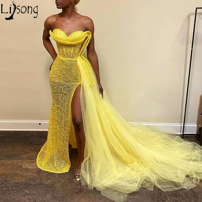 Элегантные ярко-желтые африканские вечерние платья Aso Ebi, платье ...