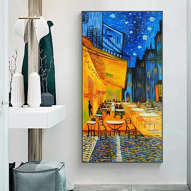 Картина на холсте с изображением кафе, террасы ночью, Ван Гога, постеры и принты, настенные картины для домашнего декора без рамы