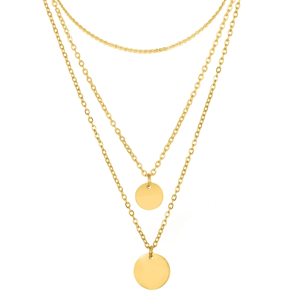 Минималистичный дизайн 316L нержавеющая стальное ожерелье набор многослойная цепочка Круглый диск Necaklace для женщин модные ювелирные изделия подарок