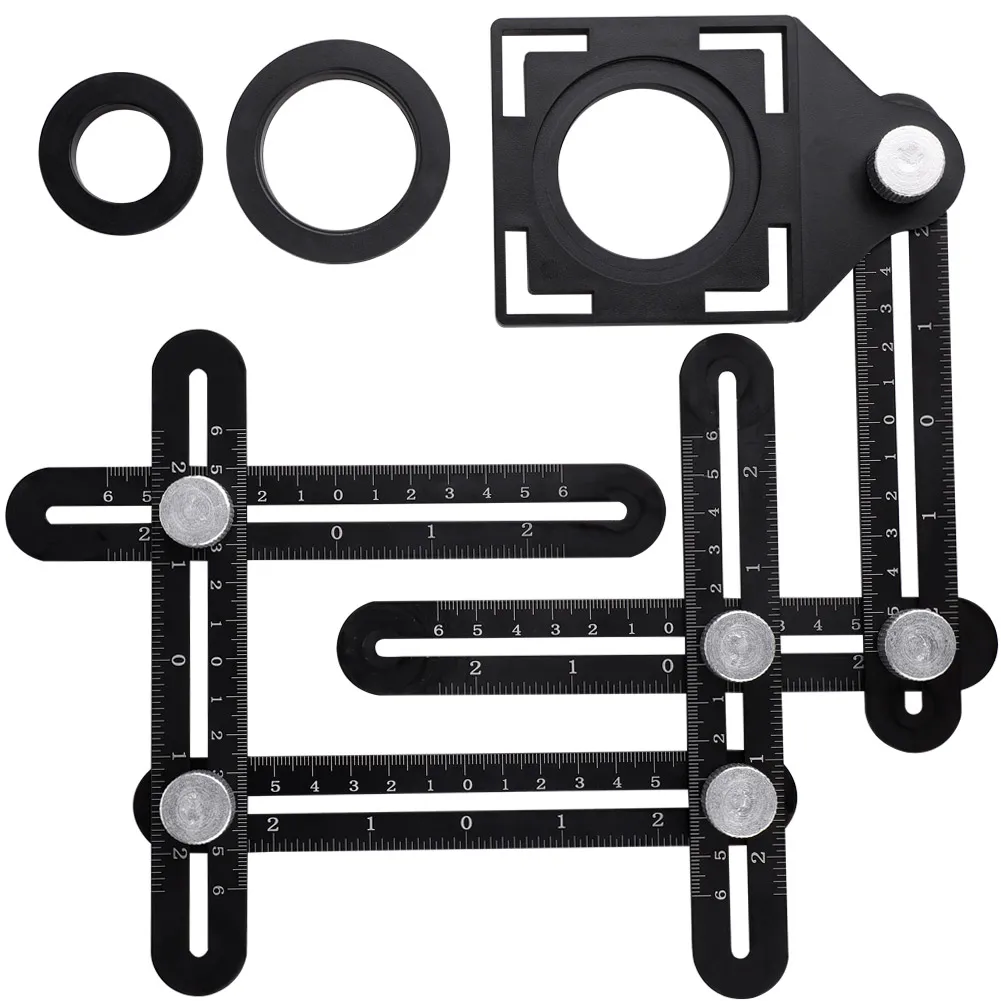 Многоугловая измерительная линейка, складная, 6 дюймов, для керамической плитки, позиционирования отверстий, с направляющим сверлом, металлический шаблон, дырокол, аксессуары